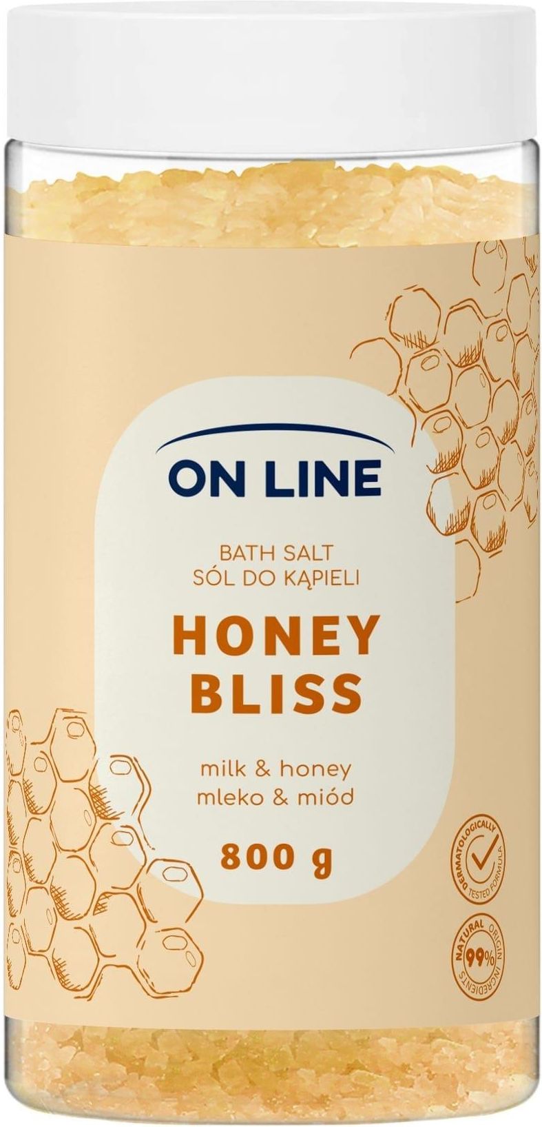 ON LINE Sól do kąpieli Honey Bliss 800 g - relaksująca sól do kąpieli z miodem Odkryj niezwykłe właściwości ON LINE Honey Bliss - relaksującej soli do kąpieli, która wzbogacona jest ekstraktem z miodu, proteinami mleka oraz solą morską z Morza Martwego. Ta wyjątkowa sól nie tylko pielęgnuje, ale również rewitalizuje Twoją skórę, pozostawiając ją jedwabiście gładką i nawilżoną. Ciesz się aromatycznym zapachem, który odpręża i wprowadza w stan głębokiego relaksu. Idealna na długie, relaksujące kąpiele po ciężkim dniu. Waga: 800 g Wzbogacona o ekstrakt z miodu Zawiera proteiny mleka Sól morska z Morza Martwego Relaksujący zapach Ostrzeżenie: Chronić przed światłem. Sposób użycia: 3 nakrętki soli wsypać do wanny pod strumień ciepłej wody, dokładnie wymieszać. Skład: Sodium Chloride, Parfum, Maris Sal, Mel Extract, Propylene Glycol, Hydrolyzed Milk Protein, Hexamethylindanopyran, CI 19140, CI 17200.
