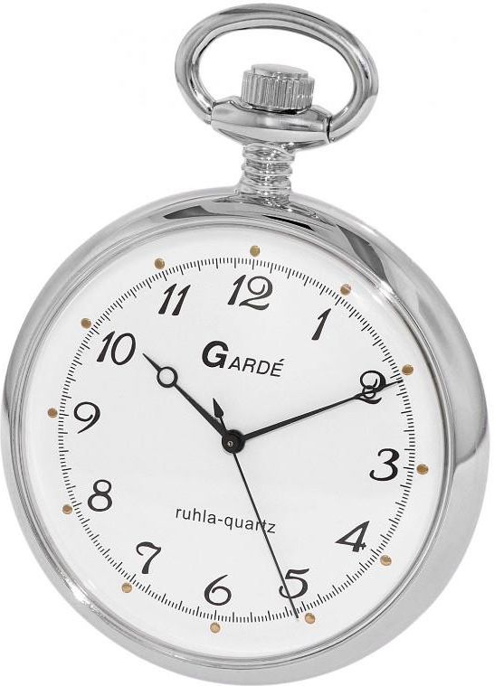 Gardé 8036-1 Zegarek kieszonkowy - modna ozdoba w stylu retro. Dane: Sposób wyświetlania godziny: 12h Kolor tarczy: biały Mechanizm: Kwarcowy Koperta:: Metalowa Szkło: Hesalitowe Wymiary koperty: Szerokość: 42 mm Grubość: 12 mm