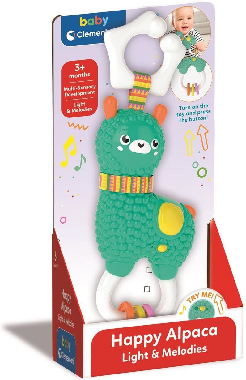 Grzechotka szczęśliwa alpaka Clementoni ✅ ✔️ Podświetlany przycisk zapewnia dziecku wspaniałą zabawę. Naciśnij przycisk, aby odtworzyć wesołe melodie i efekty dźwiękowe. Ma kółko umożliwiające zawieszenie oraz zawieszki i różne powierzchnie wspierajace rozwój multisensoryczny. ➡️ Kategoria wiekowa: …