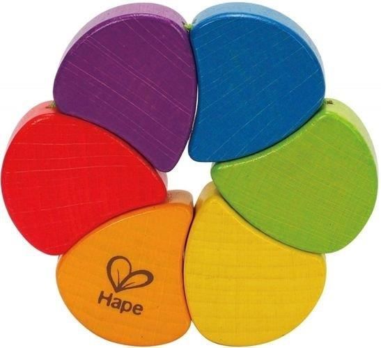 Hape Grzechotka Tęcza Drewniana grzechotka Hape, stworzona specjalnie do chwytania przez malutkie rączki, idealna podczas ząbkowania do masażu dziąseł.