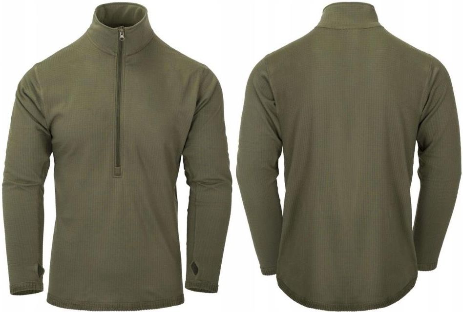 BIELIZNA TERMOAKTYWNA DŁUGI RĘKAW GÓRA KOSZULA US LVL 2 OLIVE POLIESTER 2XL Koszulka termiczna LVL 2 z długim rękawem to doskonały wybór na zimowe warunki, idealnie sprawdzająca się podczas intensywnej aktywności fizycznej w trudnych warunkach atmosferycznych. Koszulka wykonana jest z zaawansowanej technicznie tkaniny, w skład której wchodzi 95% poliester i 5% elastan. Materiał ten jest nie tylko mocny i miły w dotyku, ale również elastyczny, co zapewnia idealne dopasowanie do sylwetki. Wewnętrzna warstwa to polar microfleece, który zapewnia doskonałą izolację termiczną, jednocześnie będąc lekki i przyjemny dla skóry. Dzięki specjalnym kanalikom, koszulka skutecznie odprowadza nadmiar ciepła i wilgoci, utrzymując ciało w suchym i komfortowym stanie. Anatomiczny krój oraz płaskie szwy gwarantują pełną swobodę ruchów i komfort noszenia, nawet podczas najbardziej wymagających aktywności. Wysoka stójka z podwójnego materiału oraz długi zamek YKK umożliwiają regulację temperatury ciała, a patka przy zamku chroni brodę przed podrażnieniem. Dodatkowo, przedłużany tył koszulki zabezpiecza plecy przed chłodem, nawet podczas schylania się, a otwory na kciuki w rękawach pełnią funkcję półrękawiczek, zapewniając dodatkową ochronę dłoni. Wykończenia – takie jak wzmacniane dolne krawędzie i mankiety – zapewniają długą żywotność produktu. To idealna propozycja dla miłośników sportów wyczynowych, takich jak narciarstwo, bieganie czy jazda na rowerze, ale także dla osób ceniących komfort podczas zimowych spacerów lub pracy w trudnych warunkach. Cechy Koszulki Termicznej Zaawansowana Tkanina Techniczna: Wykonana z materiału 95% poliester, 5% elastan. Polar Microfleece: Wewnętrzna warstwa z polaru zapewnia doskonałą izolację termiczną. Polar jest lekki, miękki i przyjemny dla skóry, nie podrażnia. Anatomiczny Krój: Idealnie dopasowuje się do ciała, nie ograniczając ruchów. Płaskie szwy i podwójne przeszycia w newralgicznych miejscach dla większej trwałości. Wysoka Stójka: Z podwójnego materiału, zapewnia dodatkowe ciepło wokół szyi. Przedłużany Tył: Zabezpiecza plecy przed zimnem, nawet podczas schylania się. Otwory na Kciuki: Rękawy z otworami na kciuki pełnią funkcję półrękawiczek, chroniąc dłonie przed chłodem. Wzmocnione Krawędzie: Dolna krawędź i mankiety wzmacniane podwójną warstwą materiału dla większej trwałości. Dane Techniczne Koszulki Materiał: 95% poliester, 5% elastan Wewnętrzna Warstwa: Polar microfleece Kolor: Olive Green Rozmiar: 2XL Producent: Helikon-Tex Kraj produkcji: Polska Waga: 300 g Kod Producenta: BL-UN2-PO-02-B07 Kod EAN: 5908218794115