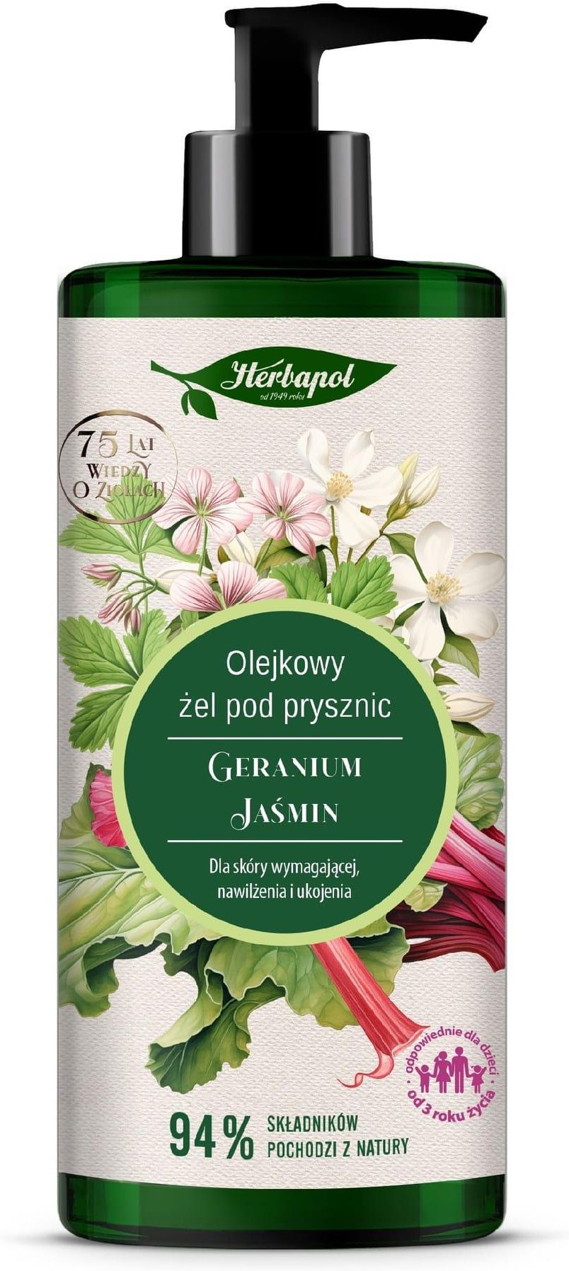 Herbapol Żel pod prysznic olejkowy geranium jaśmin 740ml Krosno