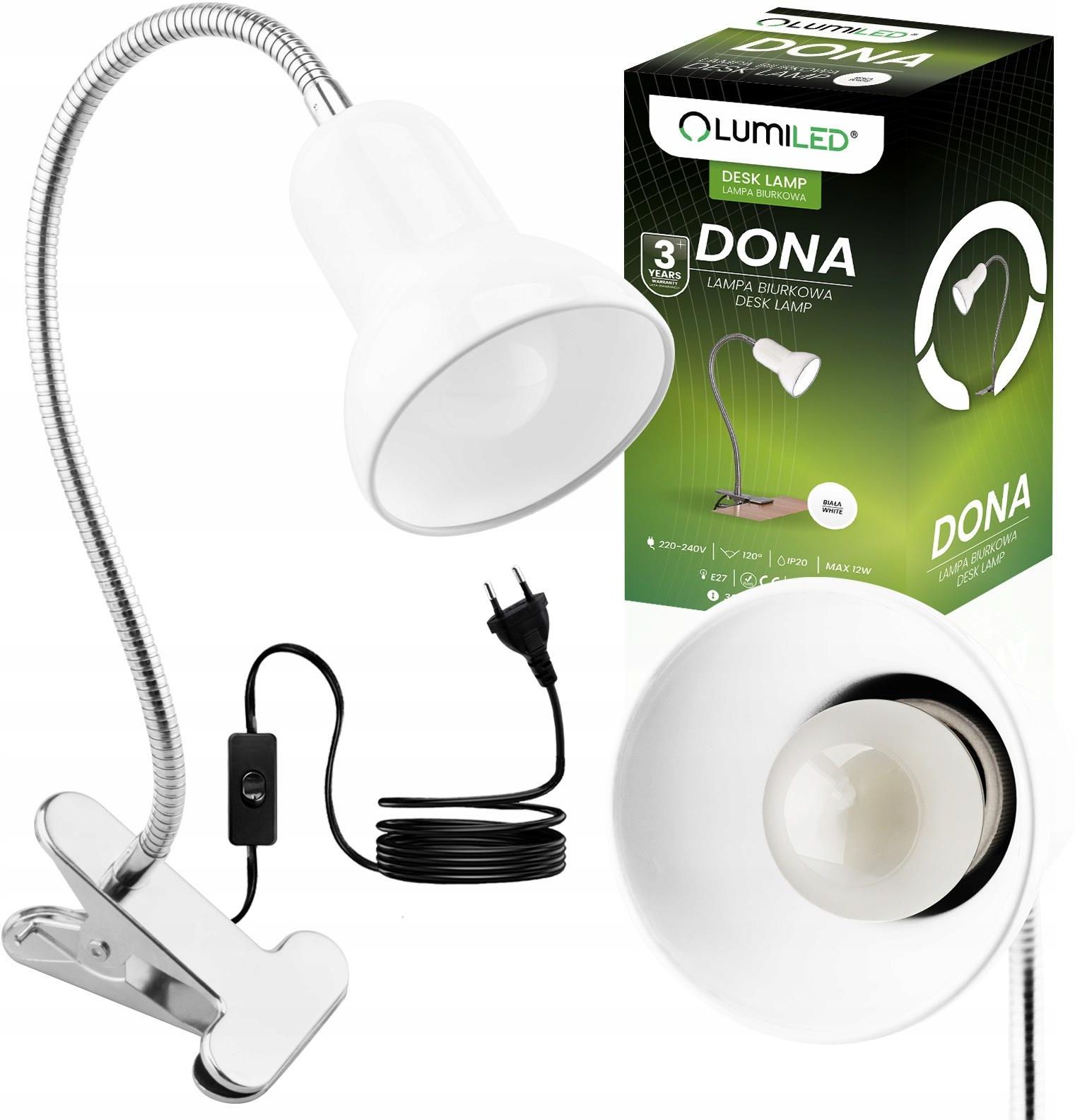 Lampka Biurkowa Szkolna Regulowana na Biurko Nocna Stołowa E27 z Klipsem Lampka biurkowa stworzona dla Twojej wygody Regulowany kąt i obrót głowicy dają pełną swobodę ustawienia światła. Dzięki temu zawsze oświetlisz dokładnie tę przestrzeń, która jest dla Ciebie najważniejsza. Oszczędzasz miejsce i zyskujesz mobilność – kompaktowa, lekka konstrukcja z klipsem pozwala łatwo przenosić i zamocować lampkę tam, gdzie najbardziej jej potrzebujesz. Długi przewód 110cm ułatwia podłączenie lampki, nawet gdy gniazdko znajduje się dalej. Masz większą swobodę w wyborze miejsca ustawienia oświetlenia. Dobierz żarówkę LED Lumiled i stwórz idealny zestaw! Korzyści z zastosowania naszego produktu Pełna kontrola i oszczędność – wybierasz żarówkę LED idealną do swoich potrzeb, a niski pobór mocy do 13W pozwala zmniejszyć rachunki za prąd. Spokój w codziennym użytkowaniu – trwała konstrukcja ze stali zapewnia niezawodność i bezpieczeństwo. Dodaje lekkości i elegancji – ponadczasowa biel podkreśla charakter zarówno tradycyjnych, jak i nowoczesnych pomieszczeń. Łatwa obsługa na co dzień – wystarczy wpiąć lampkę do gniazdka i sterować światłem przy pomocy praktycznego przełącznika ON/OFF. Certyfikaty CE i RoHS dają pewność, że wybierasz produkt bezpieczny, sprawdzony i wolny od szkodliwych substancji. Wydłużona ochrona producenta daje dodatkową pewność trwałości na lata. UWAGA! Brak źródła światła w zestawie! Zestaw zawiera 1x Lampa biurkowa z długim przewodem Instrukcja obsługi w tym w języku polskim Lampka biurkowa serii DONA marki Lumiled to wybór, który ułatwia codzienną pracę i sprawia, że otoczenie staje się bardziej komfortowe i estetyczne. Jej uniwersalny design wpasuje się w każde wnętrze, dzięki czemu nie musisz martwić się o dopasowanie do stylu pokoju czy biura. Kompaktowe wymiary pozwalają ustawić ją nawet na małej powierzchni, oszczędzając cenne miejsce. Neutralny biały kolor dodaje elegancji i świeżości, co pozytywnie wpływa na wygląd całego pomieszczenia. To lampka, która zapewni Ci wygodę, funkcjonalność i przyjemną atmosferę podczas pracy, nauki i odpoczynku. Chcesz wiedzieć więcej? Poznaj pełnię możliwości produktu marki Lumiled®! Funkcjonalność dopasowana do Twoich potrzeb Lampka biurkowa sprawia, że codzienna praca i nauka stają się wygodniejsze i mniej męczące. Dzięki gwintowi E27 sam wybierasz żarówkę LED i tworzysz dokładnie takie światło, jakiego potrzebujesz – jasne do skupienia albo ciepłe do relaksu. Masz pełną kontrolę nad atmosferą w pomieszczeniu, co pozytywnie wpływa na koncentrację i samopoczucie. Maksymalna moc 13W LED oznacza realne oszczędności na rachunkach i pewność, że korzystasz z rozwiązania przyjaznego środowisku. To lampka, która daje Ci swobodę, komfort i oszczędność w jednym. Mocny klips, który daje Ci pełną swobodę montażu Dzięki metalowemu klipsowi łatwo zamocujesz lampkę do blatu, półki czy stołu, bez potrzeby wiercenia i dodatkowych narzędzi. Stabilny uchwyt trzyma lampę pewnie na miejscu, więc możesz cieszyć się światłem tam, gdzie jest Ci najbardziej potrzebne. To rozwiązanie oszczędza miejsce na biurku i pozwala szybko zmieniać ustawienie lampki w zależności od sytuacji. W kilka sekund zyskujesz praktyczne oświetlenie, które dopasuje się do Twojego stylu pracy i nauki. Zyskaj więcej miejsca dzięki kompaktowej formie Lampka wykonana z wytrzymałej stali wyróżnia się solidną konstrukcją, która gwarantuje długotrwałe i bezproblemowe użytkowanie. Kompaktowa forma sprawia, że łatwo znajdziesz dla niej miejsce nawet w niewielkiej przestrzeni, a lekka budowa ułatwia przenoszenie w dowolne miejsce. Smukła konstrukcja pasuje na biurko, półkę czy stolik nocny, nie zajmując cennej powierzchni. Elastyczna możliwość regulacji pozwala skierować światło tam, gdzie najbardziej go potrzebujesz, co daje większy komfort podczas pracy, nauki i relaksu. To oświetlenie, które łączy praktyczność z eleganckim, ponadczasowym wyglądem. Wydłużona ochrona przez producenta dająca nam pewność zakupu produktu na lata Wydłużona ochrona oferowana przez producenta zapewnia długotrwałe zadowolenie z produktu. To świadectwo jakości, dzięki któremu klient może czuć się spokojnie, wiedząc, że dokonał trafnego wyboru. Dbałość o trwałość i niezawodność to kluczowe elementy, pozwalające cieszyć się produktem przez długie lata. Dzięki temu użytkownik zyskuje poczucie pewności i bezpieczeństwa przy każdym użyciu. Obszar zastosowań Oświetlenie biurka do pracy i nauki - zapewnia optymalne warunki do efektywnego pisania, czytania i korzystania z komputera. Użycie jako lampka nocna przy łóżku - delikatne oświetlenie do wieczornego czytania i relaksu. Stworzenie przytulnej atmosfery w pomieszczeniu - elegancki design harmonizuje z różnymi stylami wnętrz. Zastosowanie w przestrzeniach edukacyjnych - szkoły, biblioteki, uczelnie jako dodatkowe źródło światła do nauki. Przydatna w niewielkich przestrzeniach roboczych, gdzie liczy się oszczędność miejsca. Postaw na markę LUMILED! Lumiled® to marka oświetleniowa oficjalnie zarejestrowana w europejskim systemie EUIPO. Lumiled® na polskim rynku od ponad 10 lat dba o zadowolenie i komfort klienta. Najwyższą jakość światła oraz bezpieczeństwo wzroku Zastosowanie selekcjonowanych komponentów oraz najwyższej jakości materiałów Do produkcji żarówek zastosowane zostały najnowsze i najlepsze technologie dostępne na rynku Jakość marki potwierdzają liczne pozytywne opinie klientów Wdrożone wyższe parametry pod kątem rozwiązań przemysłowych, skuteczne i efektywne energetycznie Popularne produkty w technologii LED to obecnie najbardziej energooszczędny system świetlny na świecie Specyfikacja Techniczna Marka: Lumiled Seria: Dona Kąt rozsyłu światła (