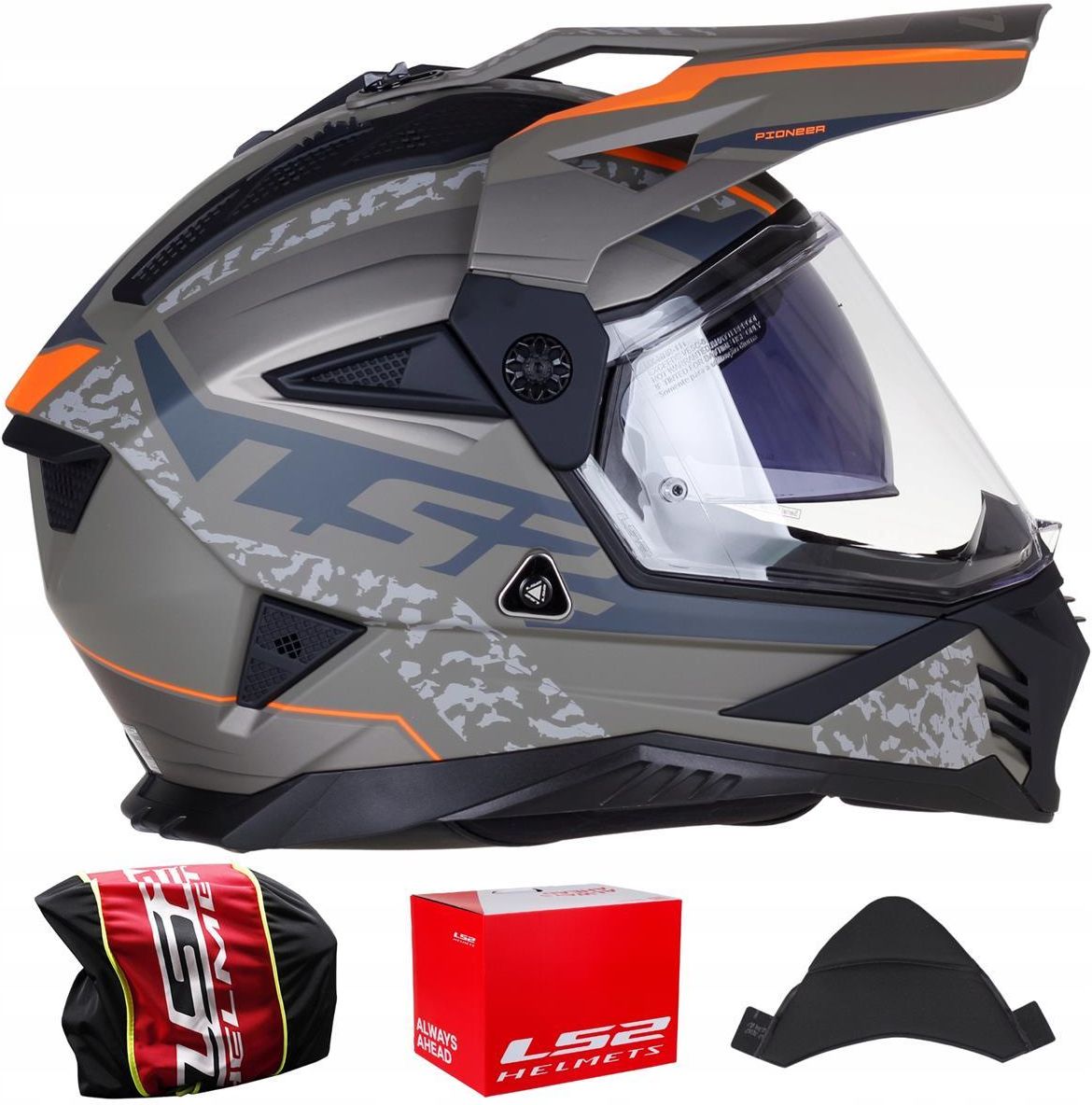 PROFESJONALNY KASK TYPU ADVENTURE LS2 MX702 PIONEER II DEVOR MATT SAND Rozmiar 3XL (65 - 66 cm) Podstawowe zalety: skorupa z KPA - wytrzymałego i odpornego na ścieranie kompozytu szerokokątny wizjer z filtrem UV i wzmocnioną odpornością na zarysowania blenda przeciwsłoneczna zwiększa komfort jazdy …