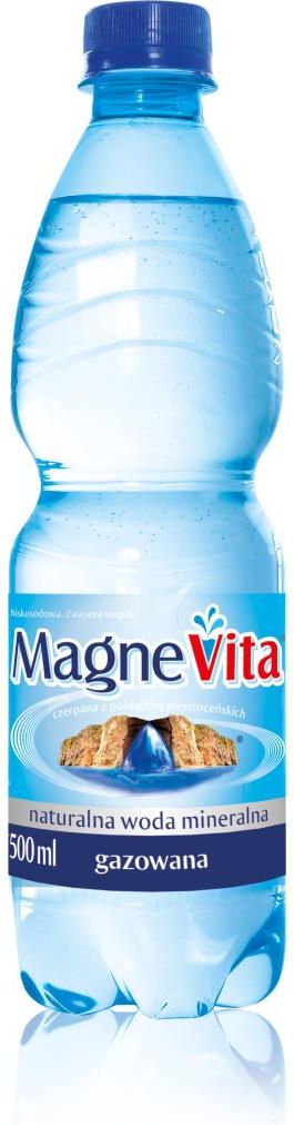 Woda MagneVita gazowana 0,5l x 1368 szt. - PALETA Woda MAGNEVITA Naturalna woda mineralna zawiera 719,47 mg/l składników mineralnych, w tym 152,3 mg/l jonów wapnia - pierwiastka, który stanowi podstawowy składnik mineralny kości i zębów, uczestniczy w procesach krzepnięcia krwi, ponadto jest niezbędny do prawidłowego funkcjonowania nerwów, właściwego kurczenia się mięśni, zapobiega osteoporozie, otyłości oraz nadciśnieniu tętniczemu. Magnevita ma orzeźwiający smak i skutecznie gasi pragnienie. Doskonałe i naturalne właściwości wód wydobywanych bezpośrednio ze źródeł, zapewniają wodzie Magnevita absolutną czystość i niepowtarzalny smak.