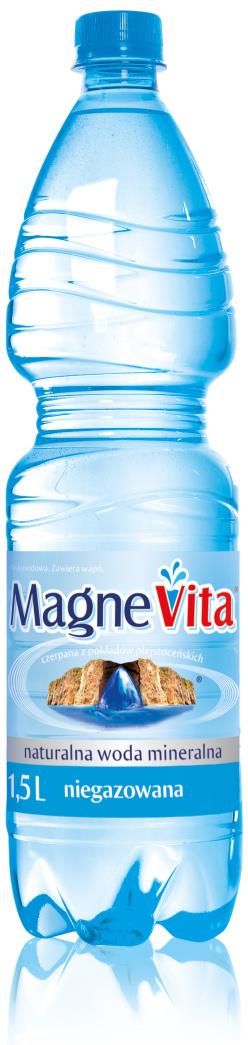 Woda MagneVita niegazowana 1,5l x 504 szt. - PALETA Woda MAGNEVITA Naturalna woda mineralna zawiera 719,47 mg/l składników mineralnych, w tym 152,3 mg/l jonów wapnia - pierwiastka, który stanowi podstawowy składnik mineralny kości i zębów, uczestniczy w procesach krzepnięcia krwi, ponadto jest …