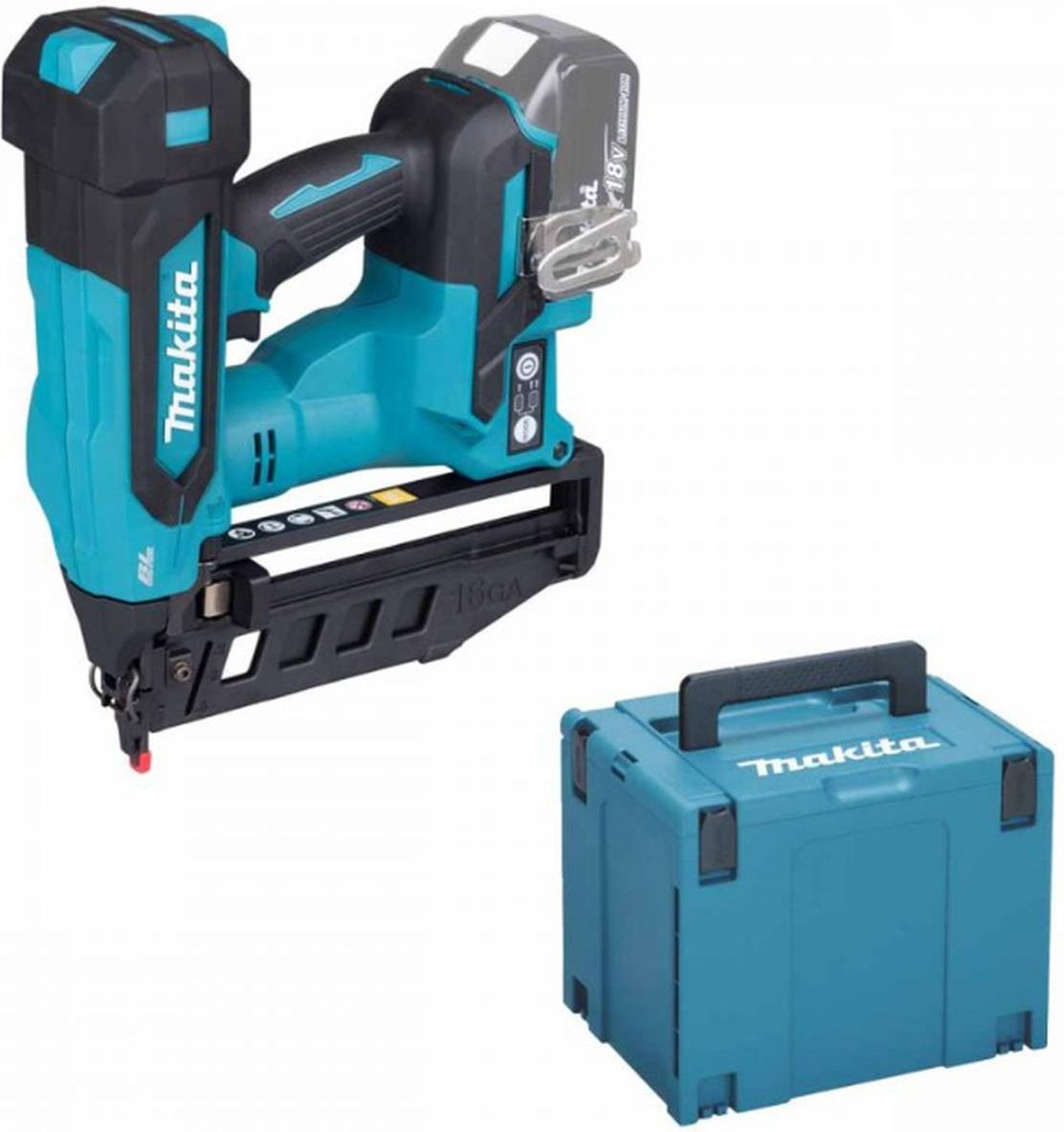 Gwoździarka akumulatorowa Li-ion LXT 18 V Lekka i kompaktowa gwoździarka akumulatorowa do mocnych gwoździ 16GA - 1,6 mm Długość gwoździa 19 - 64 mm Ta lekka i kompaktowa maszyna zasilana jest akumulatorami litowo-jonowymi LXT Niezawodny silnik beztlenowy może wbijać do 3 gwoździ na sekundę Technologia XPT do użytku w środowiskach o zwiększonym zapyleniu lub wilgotności Wygodne wbijanie gwoździ bez wiązania węża powietrznego Niski odrzut maszyny Możliwość regulacji głębokości wbijania gwoździ Wybór między gwoździowaniem pojedynczym i seryjnym Ochrona maszyny przed pustym strzałem Łatwe umieszczanie gwoździ dzięki specjalnemu kształtowi wylotu gwoździarki Beznarzędziowe otwieranie ust Gumowany korpus chroni urządzenie przed zarysowaniami Do 1100 gwoździ na jednym ładowaniu akumulatora BL1820B Dostawa bez baterii i ładowarki Parametry techniczne Akumulator: Li-ion LXT 18 V Typ gwoździa: Wheelwright's 16 GA 1,6 mm Długość gwoździa: 19 - 64 mm Pojemność tacy: 110 szt Waga bez ogniwa AKU: 2,7 kg Wymiary (dł. x szer. x wys.): 276 x 98 x 320 mm Akcesoria Makpac (821552-6) Wkładka Makpac (836300-0) Adapter ust (422B86-0) Hak (346317-0) Śruba M4x12 (251314-2) Zdjęcie ilustracyjne