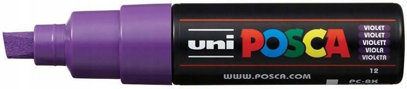Marker z farbą plakatową Uni POSCA PC-8K fioletowy X23047 * szeroki ścięty marker z farbą plakatową do pisania i malowania po każdej powierzchni * pigmentowy tusz na bazie wody * nie przesiąka przez papier * zapewnia spójną teksturę od początku do końca * wystarczy energicznie potrząsnąć markerem …