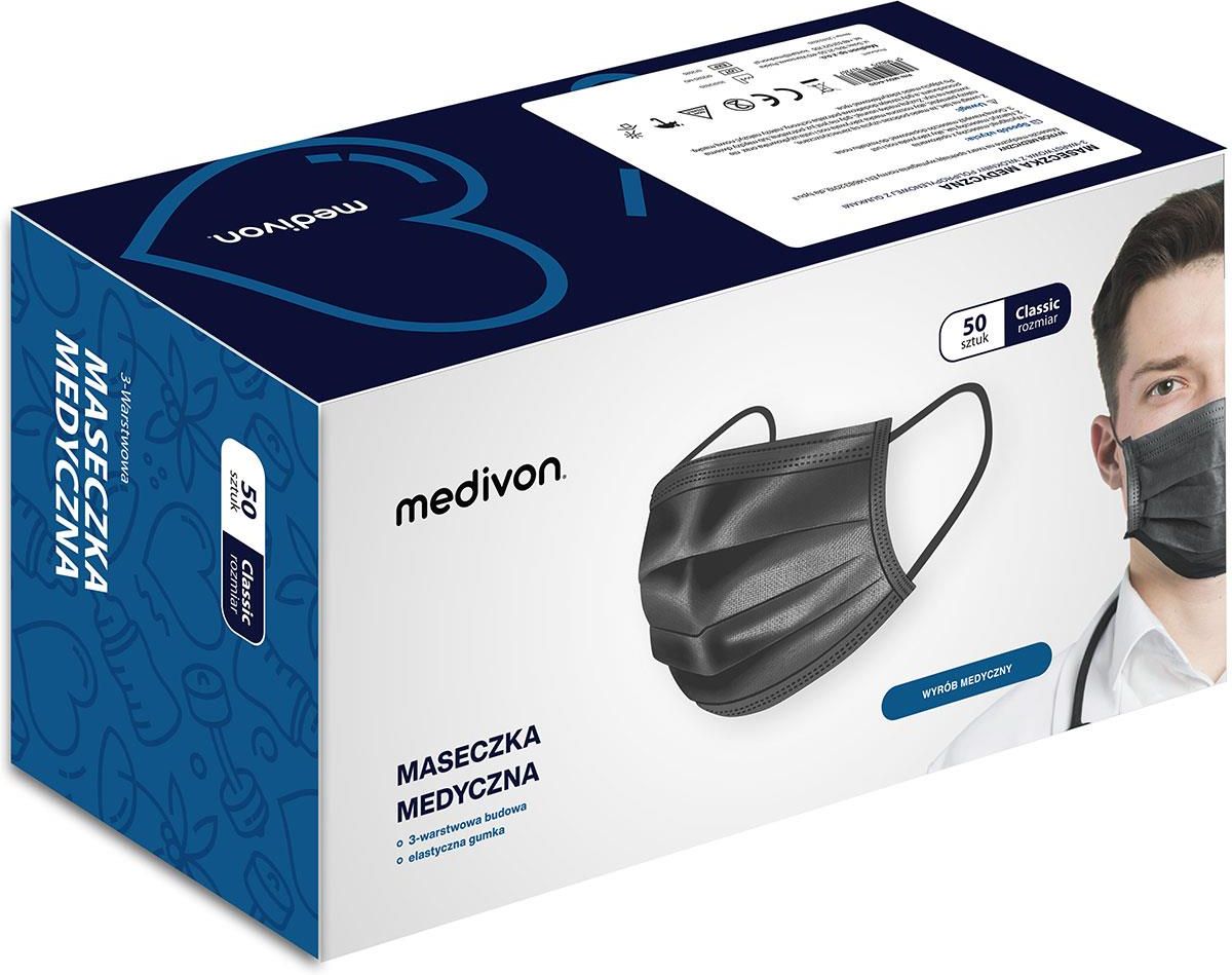 Maseczka ochronna Medivon czarna 3 warstwowa 50szt. Krosno