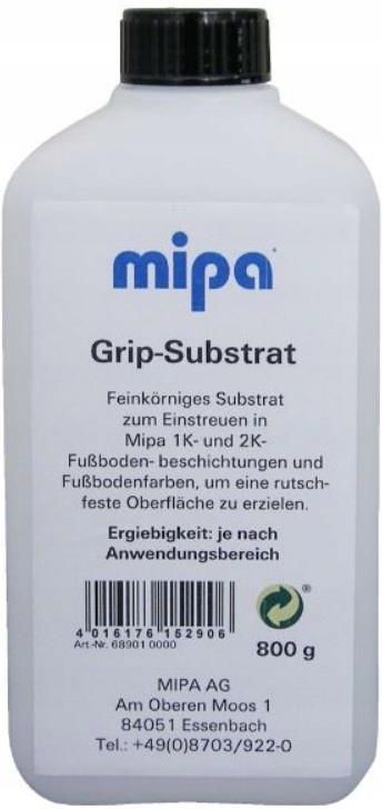 MIPA DODATEK ANTYPOŚLIZGOWY DO LAKIERÓW RÓWNIEŻ PROTECTOR, COBRA, RAPTOR I INNYCH 100GRAM Do zastosowań wewnętrznych i zewnętrznych, na bazie minerałów - zaprojektowany, aby zapewnić twardą, odporną na ścieranie powierzchnię wolne od krawędzi skrawania może być stosowany bez ograniczeń we wszystkich farbach i powłokach rozpuszczalnikowych Zawartość : proszek mineralny Dodatkowe efekty mogą być tworzone przez mieszanie Mipa GripSubstat w różnych ilościach. W rezultacie większa ilość Mipa GripSubstrat będzie miała bardziej chropowatą powierzchnię. Jako standard, zalecamy dodanie 5-10% wagowo Mipa GripSubstrat w zależności od podłoża i zastosowania może się różnić, dlatego zalecamy wykonanie testów. Produkt w opakowaniu plastikowym zastępczym, pojemność 100g