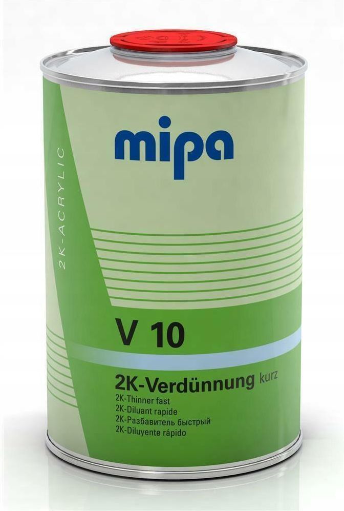 Mipa 2K Rozcieńczalnik V10 szybki - 1L Mieszanina rozpuszczalników organicznych o opóźnionym parowaniu, służący do rozcieńczania 2K podkładów, 2K lakierów i 2K lakierów bezbarwnych. Umożliwia poprawę aplikacji i absorpcję mgiełki lakierniczej podczas prac lakierniczych przeprowadzanych na obiektach wielkopowierzchniowych i /lub w wysokiej temperaturze otoczenia.