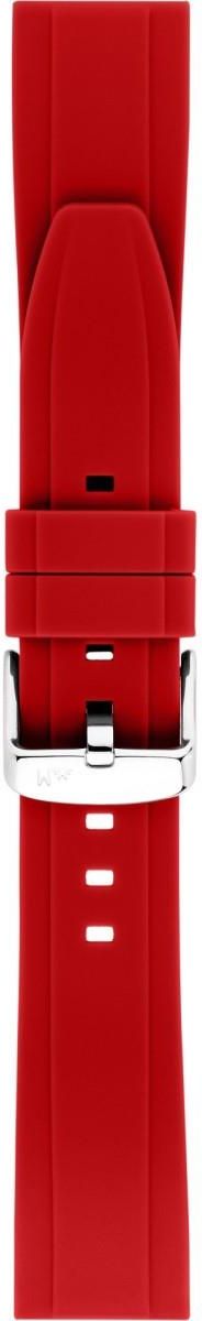Czerwony gumowy / silikonowy zwężany gładki matowy wodoodporny pasek do zegarka MORELLATO Easy Click. Szerokość 20 mm. Antyalergiczna sprzączka. Pasuje do każdego zegarka i smartwatcha ze standardowym mocowaniem o szerokości 20 mm. Teleskopy w zestawie