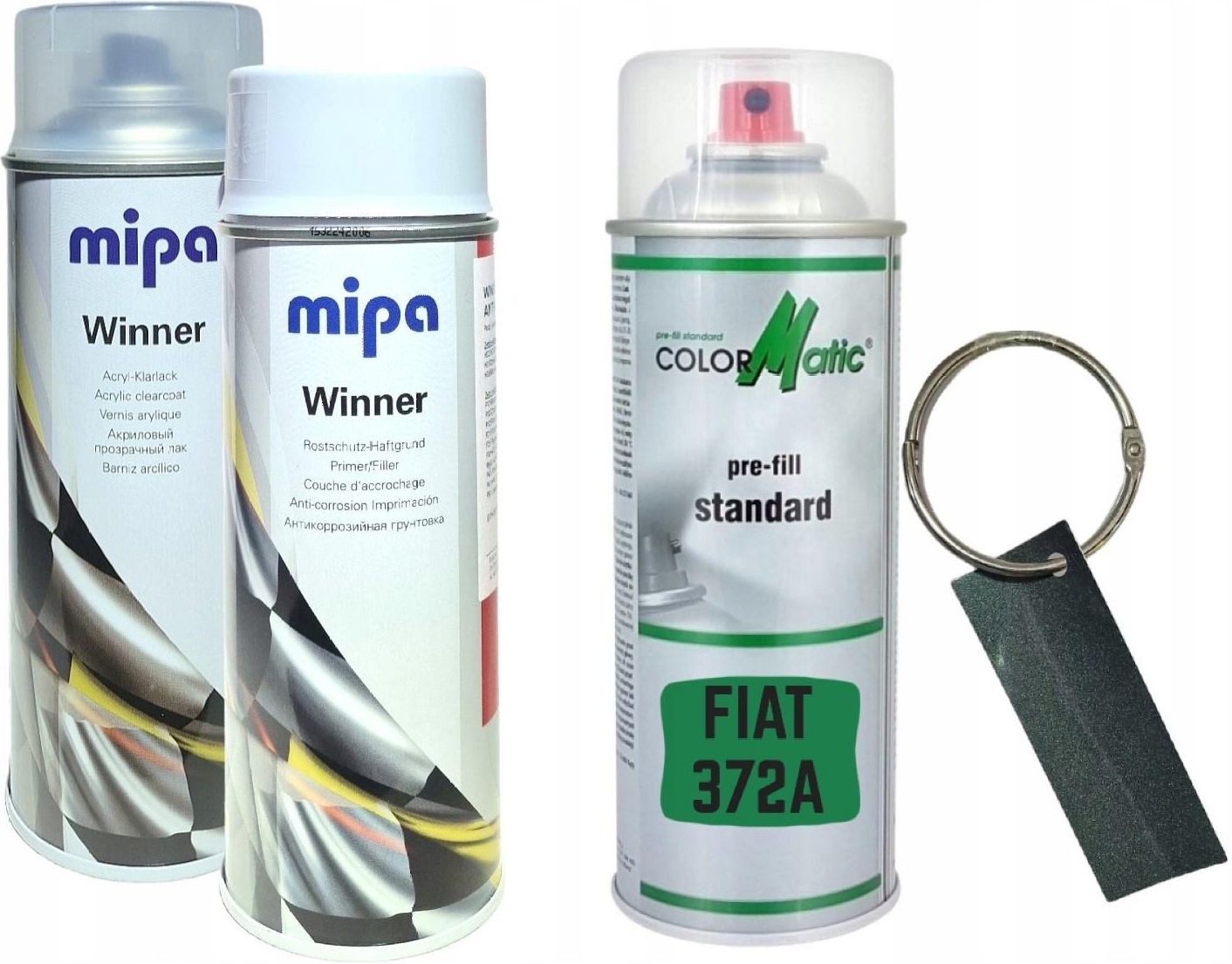 ZESTAW LAKIER SAMOCHODOWY SPRAY FIAT 372A W skład prezentowanego zestawu wchodzi: Lakier samochodowy : FIAT 372A - SPRAY 375ml Lakier bezbarwny : MIPA - SPRAY 400ml Podkład akrylowy : MIPA - SPRAY 400ml LAKIER SAMOCHODOWY SPRAY FIAT 372A Spray doskonale sprawdza się do malowania niewielkich …