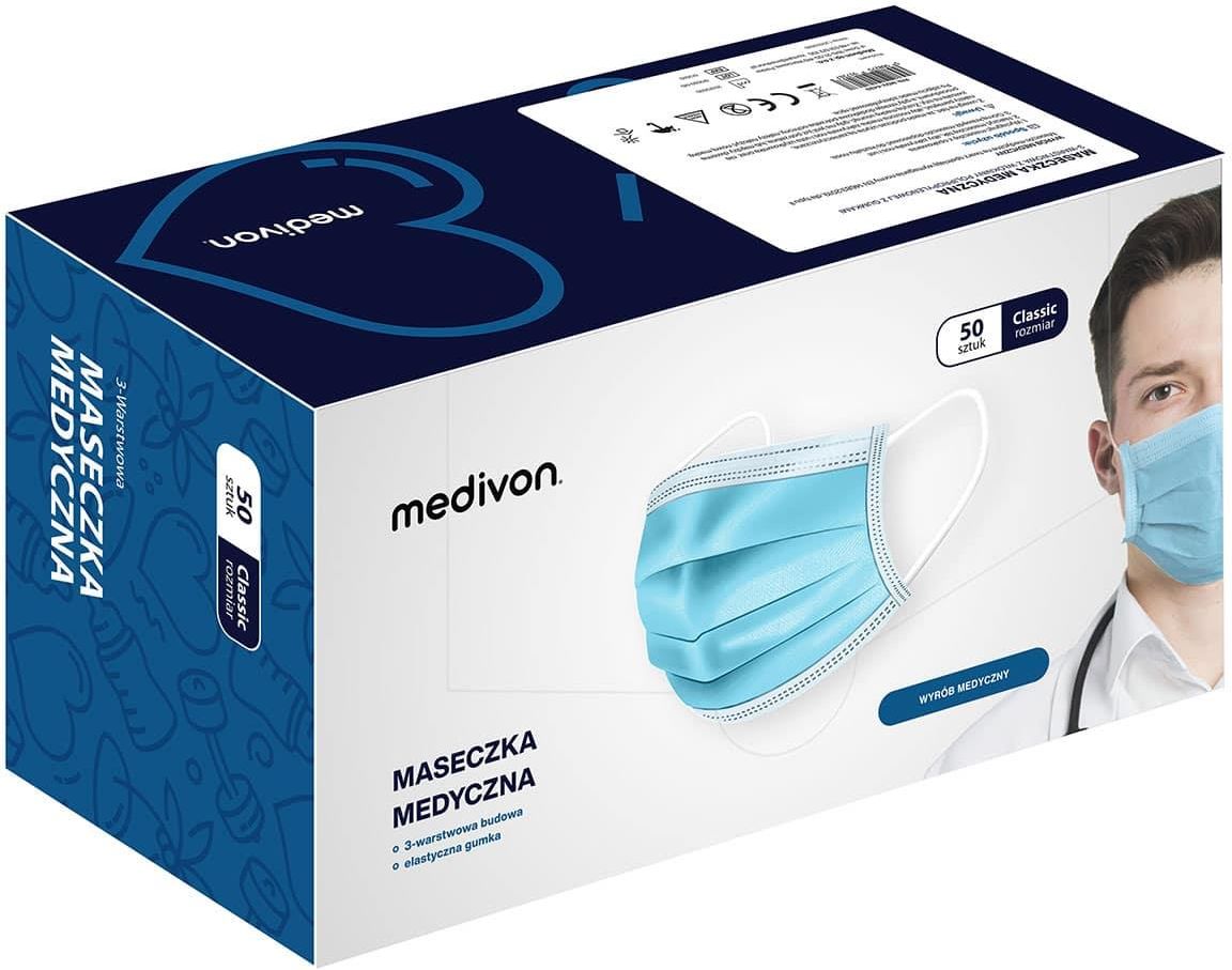 Niebieska Maseczka Medyczna Chirurgiczna Medivon Mdv-4420 Typ II, 3 Warstwowa, 50 Szt. Krosno