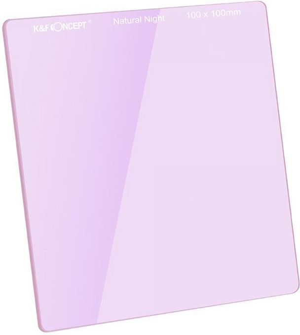 Kwadratowy filtr korekcyjny K&F Concept Natural Night 100 × 100 mm, przeznaczony do fotografowania nocnego nieba. Umożliwia usunięcie z obrazu żółtego lub pomarańczowego zafarbu, pochodzącego z rtęciowych i sodowych latarni ulicznych, a także innego rodzaju oświetlenia typu Low CRI. Wykonany z wytrzymałego szkła optycznego pokrytego warstwami ochronnymi i antyrefleksyjnymi.