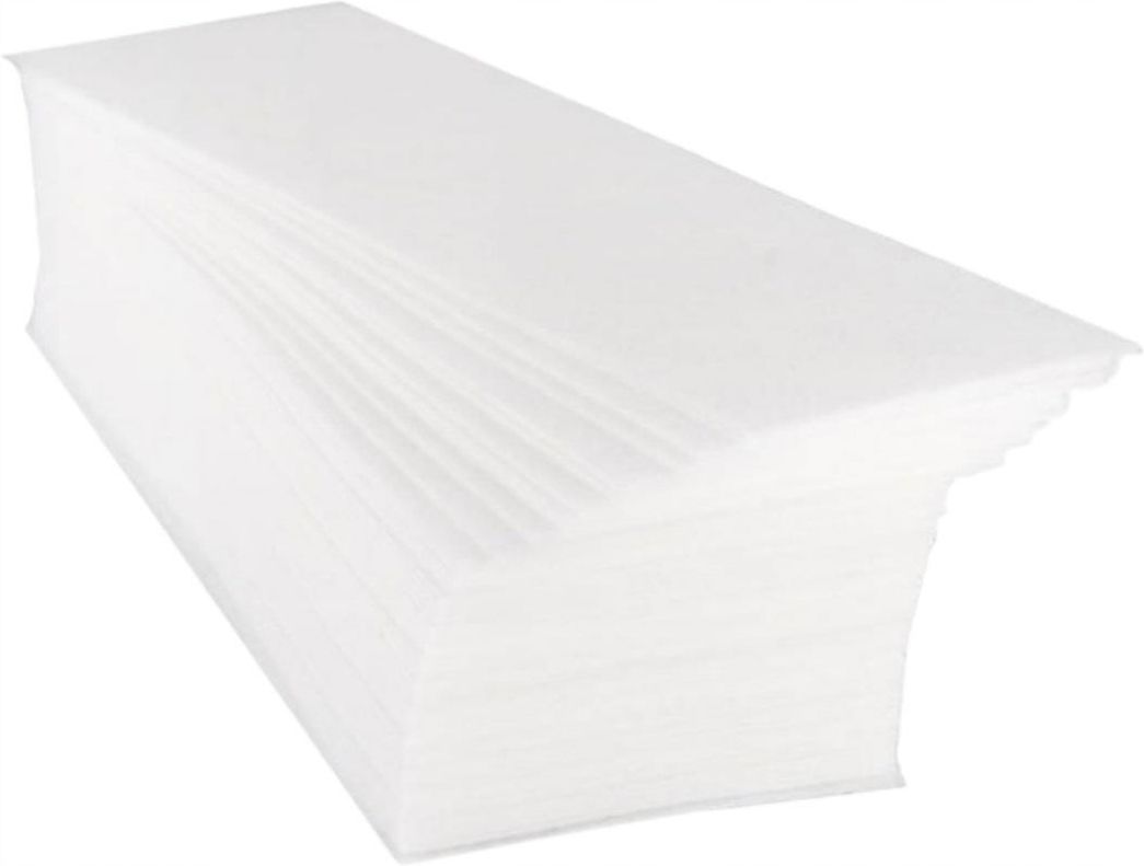 Paski fizelinowe do depilacji 100 sztuk Do stosowania przy depilacji woskiem. Fizelinowe paski do depilacji są dużo lepsze w depilacji niż bawełniane, wosk lepiej się do nich przykleja, dzięki czemu przy zabiegu wosk odrywany jest równomiernie. Sposób użycia pasków: Włożyć wkład z woskiem do podgrzewacza i włączyć do zasilania, po uzyskaniu płynnej konsystencji wyjąć wkład i stroną z rolką nakładać wosk na depilowane miejsca, przyłożyć pasek. Wosk bardzo szybko schnie i może być zdejmowany po około 10 sekundach od nałożenia. Po zastygnięciu wosku szybkim ruchem zerwać pasek. Wymiary: szerokość 7cm, długość 21cm. Ilość: 100 szt. pociętych pasków w opakowaniu. Paski bawełniane do depilacji - idealne do zabiegów z użyciem wosku Paski bawełniane do depilacji, zapewniają najwyższy komfort podczas zabiegu. Paski te, są doskonałym rozwiązaniem do salonów, czy użytku domowego. Zapewniają skuteczne usunięcie nadmiernego owłosienia. Ponadto depilacja woskiem eliminuje owłosienie na znacznie dłużej niż np. maszynka. Paski bawełniane wykonane są z miękkiego materiału, co sprawia, że nie wywołują podrażnień. Sprawdzą się idealnie do każdego rodzaju wosku. Z łatwością wykonasz nimi zabieg depilacji. Poza tym paski są wysokiej jakości a ich cena niska. Paski do depilacji bawełniane - skuteczny sposób na pozbycie się owłosienia Depilacja woskiem to bez wątpienia świetny sposób na pozbycie się owłosienia na długi czas. Efekt tego zabiegu utrzymuje się, w zależności od szybkości wzrostu włosa i może wynosić od trzech do nawet sześciu tygodni. Zabieg depilacji woskiem jest doskonałym wyjściem dla osób, pragnących pozbyć się owłosienia na dłużej. Dzięki paskom bawełnianym zabieg depilacji woskiem wykonasz z łatwością samodzielnie w swoim domu! Po nałożeniu wosku wystarczy docisnąć do niego pasek i zdecydowanym, szybkim ruchem oderwać go w przeciwną stronę do wzrostu włosa. Pozostałości wosku należy usunąć olejkiem po depilacji. Zamów paski do depilacji i wykonaj zabieg samodzielnie!