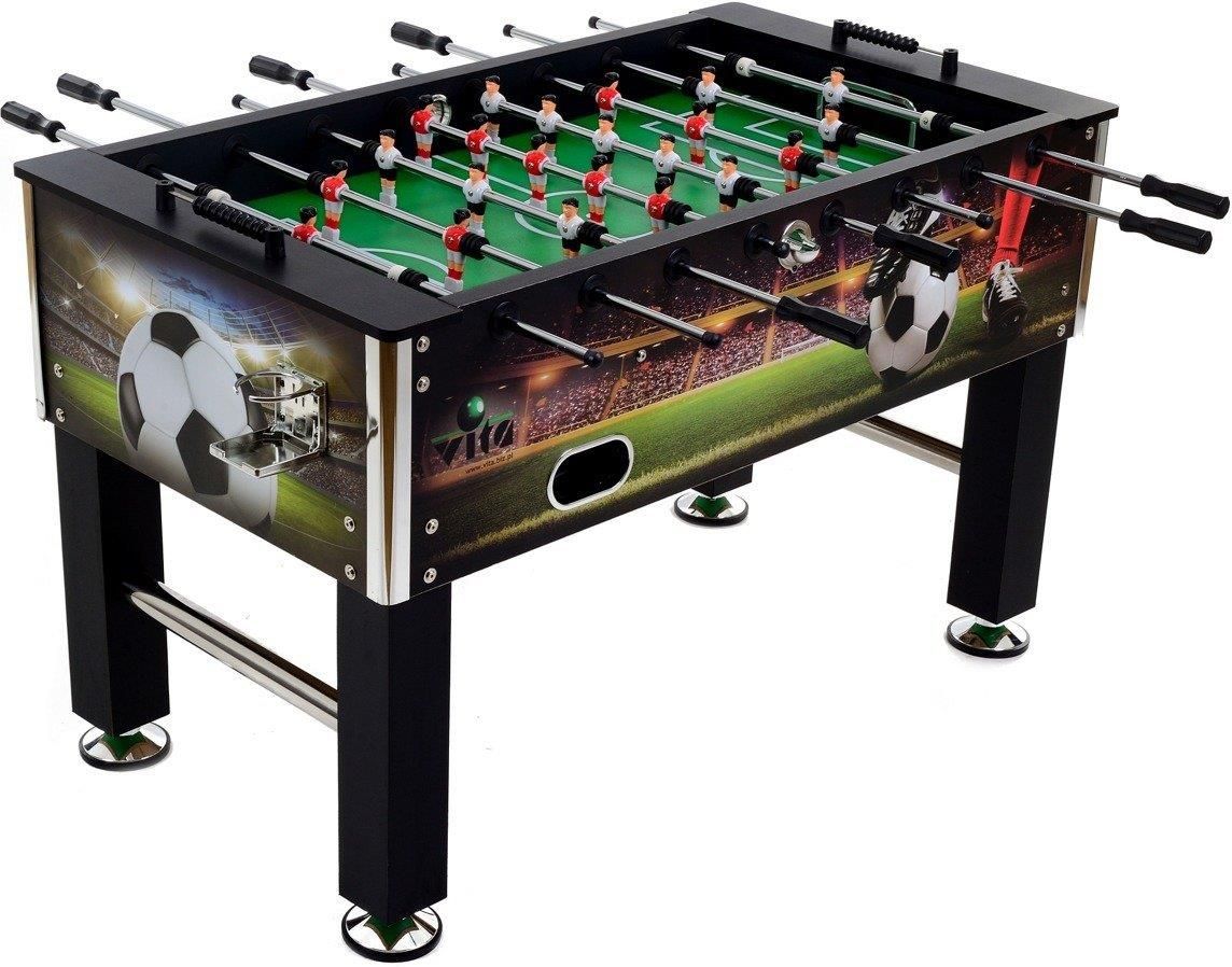 GRA PIŁKARZYKI RIVAL KOLOR SOLID zagwarantuje Ci ekscytujące wielogodzinne rozgrywki,możesz wcielić się w zawodników na boisku! Stół do piłkarzyków przeznaczony do zabaw w klubach, świetlicach,ośrodkach rekreacyjno-wypoczynkowych. W grze mogą brać udział drużyny jedno lub dwuosobowe. Gra składa się z 22 tworzywowych graczy w dwóch kolorach, umieszczonych na ośmiu obrotowych i przesuwnych drążkach stalowych oraz dwa liczniki goli. Wyróżnia go atrakacyjny dizajn. Do użytku zarówno domowego jak i świetlicowgo. Wyposażone w prowadnice z stalowych prętów (A NIE RUREK !!!). Parametry: • stolik wykonany z płyty laminowanej MDF o grubości 36 mm • przelotowe wytrzymałe prowadnice o średnicy 16 mm (STALOWE PRĘTY !!! - NIE RURKI). Nie da się ich połamać , w przeciwieństwie do pustych rurek w srodku. • grubość płyty boiska: 12 mm • plastikowe, antypoślizgowe rękojeści • 2 manualne liczniki na strzelone gole • piłkarzyki wykonane z ABS • podwyższone narożniki pola gry, tak aby piłeczka nie zatrzymywała sie na nich • stabilne nogi o wymiarach : 10 cm x 10 cm • 2 metalowe poprzeczki stabilizujące konstrukcję • metalowe, regulowane stopki z gumowymi nakładkami idealnie dopasowują się do podłoża ( są antypoślizgowe i nierysujące podłogi) o średnicy 12,5cm • 2 uchwyty na napoje • do piłkarzyków dołączono 2 piłeczki • wymiary boiska ( pola gry): 117 cm x 67 cm • wymiary zewnętrzne stolika: 138 cm x 74 cm x 87 cm • wewnętrzne wymiary bramek: 18 cm x 6,5 cm • waga : 56 kg • do transportu stolik spakowany w karton o wymiarach: 138 cm x 78 cm x 18 cm i wadze 60 kg