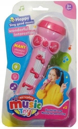 Różowy mikrofon dla małych piosenkarek. Mikrofon świeci kolorowym światełkiem, a także gra melodie. Zabawka działa na baterie typu AAA. Baterie nie są załączone do zabawki. Produkt zapakowany w kartonową podstawkę z przezroczystym kloszem. Zabawka dla dzieci od 3 lat. Podane wymiary są wymiarami opakowania. Wymiary: 260x150 mm Grupa wiekowa: 3+ Opakowanie: blister