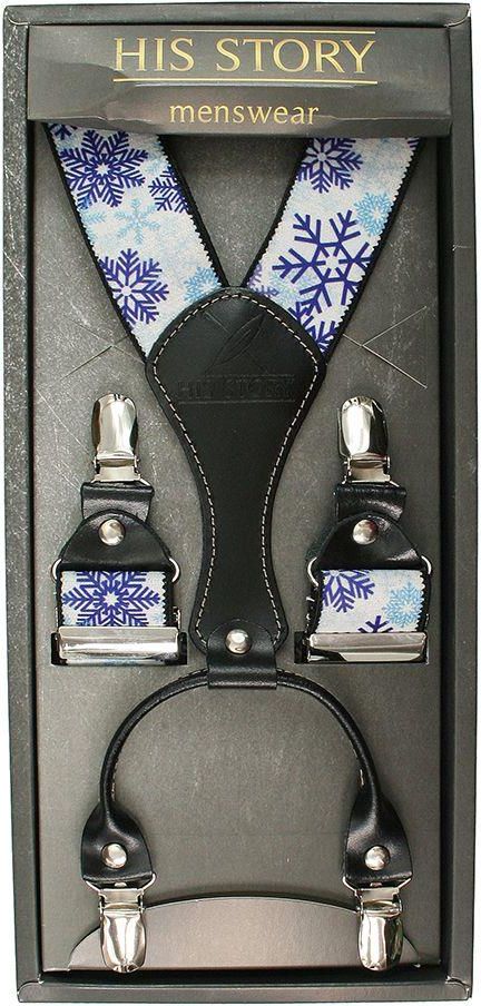 Eleganckie szelki męskie marki HIS STORY. Doskonałe wykonanie oraz dobre materiały gwarantują wysoką jakość produktu. Szelki to obecnie bardzo mode uzupełnienie weekendowego i klubowego stroju. Posiadają regulację długości, więc każdy będzie mógł je dostosować idealnie pod siebie. Mają także metalowe zapięcia. Szerokość gumy to 3,5 cm. Zapakowane są w kartonowe pudełko. Świąteczne szelki to doskonały pomysł na prezent. Przebierz się sam lub obdaruj najbliższych.