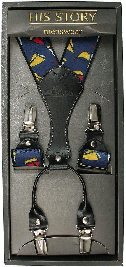 Szelki Szerokie, Granatowe w Żółte Żaglówki, Męskie, Marinistyczne, Skóra Naturalna HIS STORY SZHSTR0092 Krosno