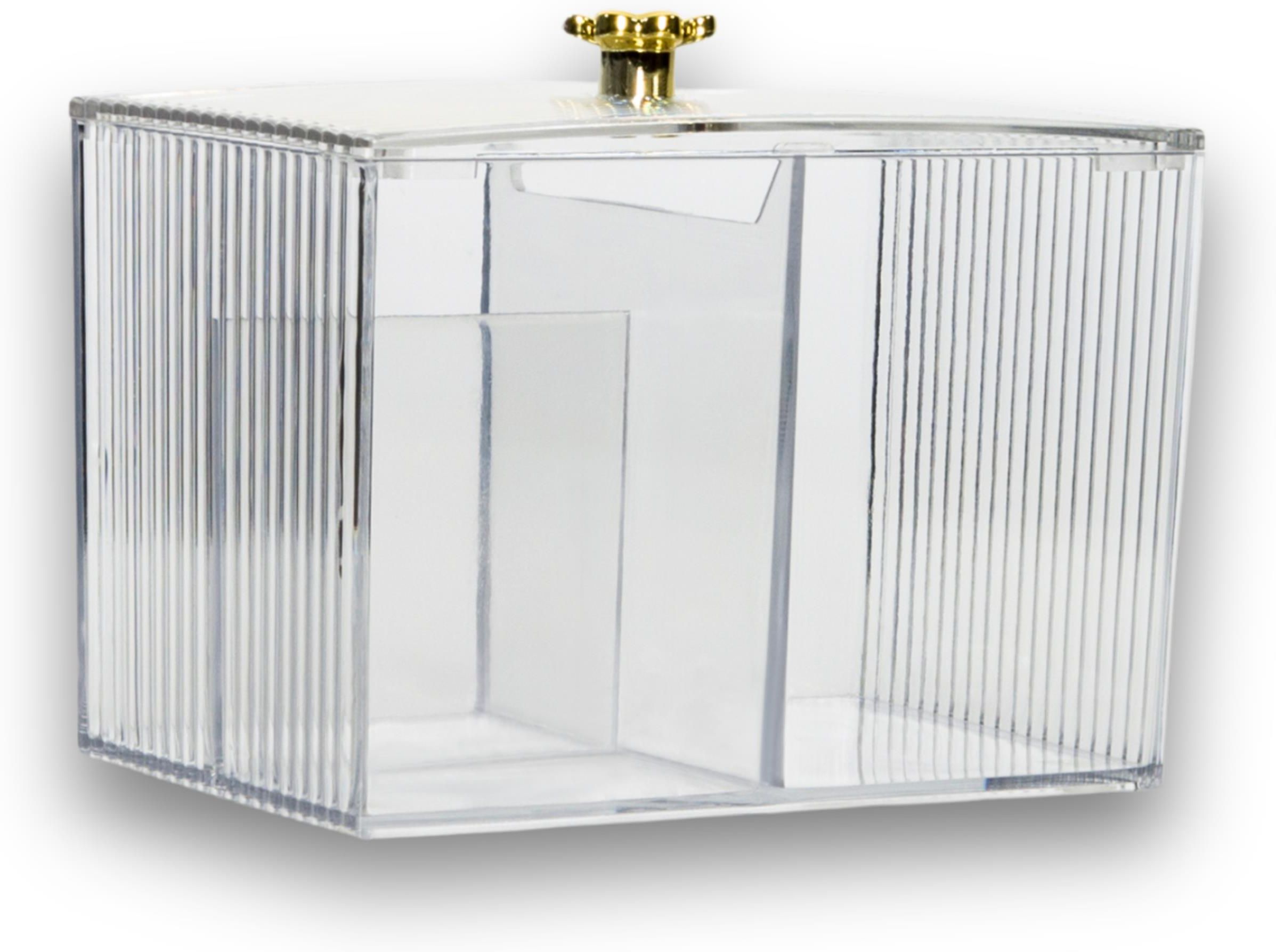 TAPTAP Organizer Kosmetyczny Transparentny TAPTAP Przezroczysty organizer z przegródkami transparentny Elegancki i funkcjonalny organizer, idealny do przechowywania drobnych akcesoriów, kosmetyków lub biżuterii. Wyposażony w zamykane wieczko z ozdobnym uchwytem, chroni Twoje przedmioty przed kurzem, jednocześnie pozwalając na łatwe odnalezienie tego, czego potrzebujesz. Wnętrze zostało podzielone na funkcjonalne przegródki, co ułatwia segregowanie zawartości, dzięki czemu każdy przedmiot ma swoje miejsce. Minimalistyczny design i wysokiej jakości wykonanie sprawiają, że organizer świetnie prezentuje się zarówno na toaletce, jak i w łazience czy na biurku. Idealny wybór dla osób, które cenią porządek oraz estetyczne rozwiązania do codziennego użytku. Wykonany z przyjaznego dla środowiska tworzywa PP (polipropylen). Wymiary: 13.5 x 8.8 x 9.8 cm