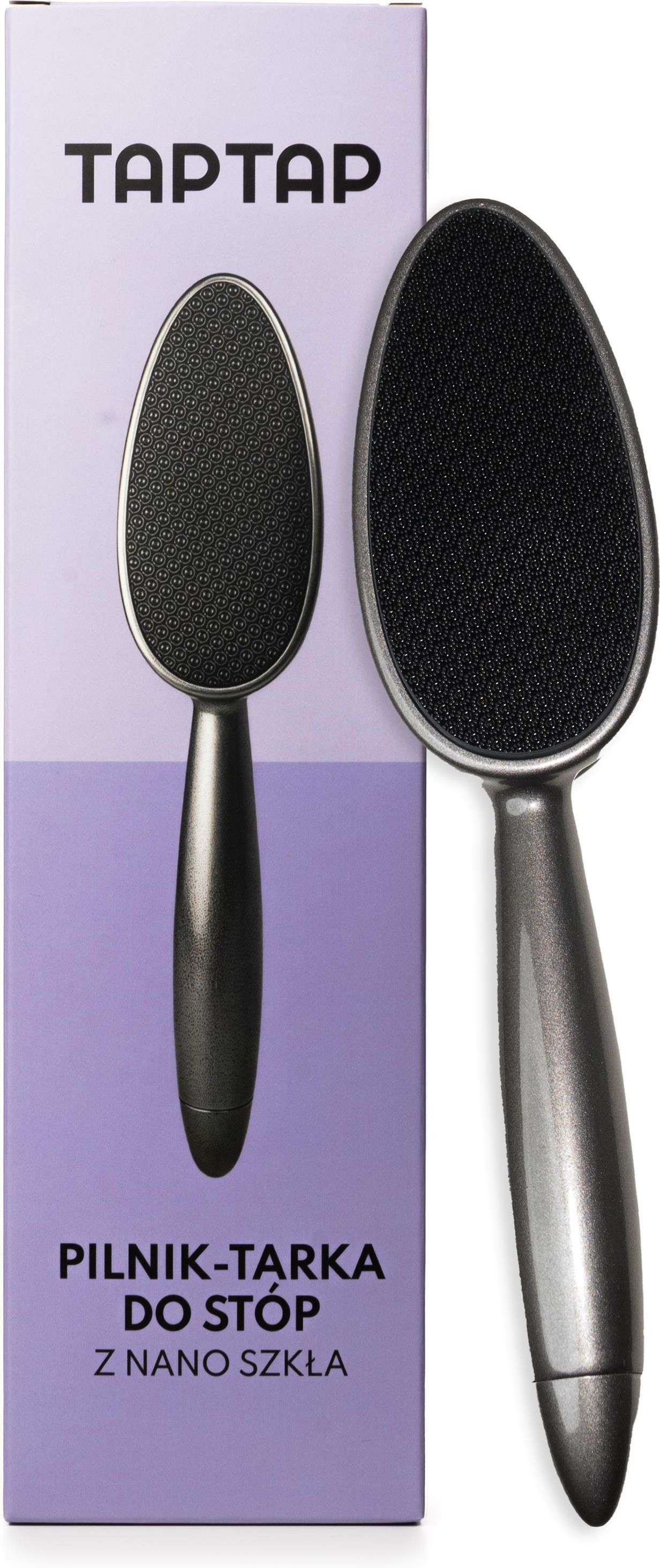 TAPTAP Pilnik-Tarka do Stóp z Nano Szkła Czarny Odkryj nowy poziom gładkości i miękkości Twoich stóp. Innowacyjny pilnik z technologią nano szkła pozwoli Ci przeprowadzić profesjonalny i szybki zabieg pedicure w Twojej łazience. Tarka posiada wygodny uchwyt, dzięki czemu jest poręczna i niezwykle łatwa w użytkowaniu. Może być stosowana na sucho i na mokro. Wysokiej jakości nano szkło jest hipoalergiczne, bezbolesne i delikatne. W łagodny sposób usuwa zrogowaciały naskórek i wygładza szorstką skórę nie pozostawiając zatarć. Skuteczny ratunek dla popękanych i szorstkich pięt w zaledwie kilka minut. Po zastosowaniu skóra staje się aksamitnie miękka i wygładzona, a efekt utrzymuje się wiele dni. Na opakowaniu znajdziesz instrukcję stosowania pilnika zarówno na sucho, jak i na mokro.