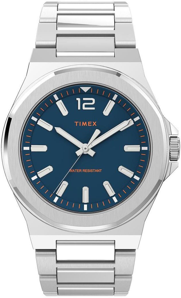 Zegarek amerykańskiej firmy Timex TW2V02000 z kolekcji Essex Avenue na stalowej bransolecie. Marka Timex sięga w swojej historii 1854 roku, kiedy to powstało Waterbury Clock Company. Innowacyjne pomysły i nowe rozwiązania takie jak przeniesienie zegarka z kieszeni na nadgarstek, przyniosły marce tak dużą popularność, że te czasomierze nosił co trzeci Amerykanin. Zachwycił się nimi nawet Mark Twain. W pierwszej połowie XX wieku marka stała się symbolem niezależnej kobiety. Nowatorskie projekty i precyzja wykonania sprawiły, że Timex stał się najpopularniejszym zegarkiem na świecie. TIMEX TW2V02000to klasyczny model w eleganckim stylu. Zegarek napędzany jest za pomocą precyzyjnego mechanizmu kwarcowego zasilanego baterią o średniej żywotności około 2 lat. Koperta w srebrnym kolorze wykonana z wysokiej jakości stopu metali, jest hipoalergiczna i odporna na ścieranie. Czasomierz zawieszony został na srebrnej bransolecie. Zapięcie motylkowe, które zastosowano w czasomierzu umożliwi szybkie zakładanie i zdejmowanie zegarka, przy czym konstrukcja nie pozwala na samoistne odpinanie bransolety. Niebieska tarcza zabezpieczona została szkiełkiem mineralnym. Obecnie jest to jeden z popularniejszych typów szkieł zegarkowych ze względu na odporność na zarysowania i pęknięcia. Czasomierz TIMEX TW2V02000wyposażono w tradycyjny mechanizm wskazówkowy, dzięki temu odczyt jest prosty i intuicyjny. Znaczniki godzin oraz wskazówki pokryte zostały powłoką luminescencyjną co umożliwia odczyt w ciemności. Klasa wodoszczelności TIMEX TW2V02000wynosi 5ATM(WR50m). Wodoszczelność ta oznacza, że zegarek jest odporny na krótkotrwałe zanurzenie w wodzie np. podczas kąpieli czy mycia rąk. Ten wyjątkowy czasomierz przypadnie do gustu osobom lubiącym niebanalne i wyróżniające się dodatki. Model uzupełni stylizację o modny element i nada jej wyjątkowości. Zegarek TIMEX TW2V02000jest fabrycznie nowy oraz dostarczany w firmowym opakowaniu wraz z kompletem dokumentów od producenta. Nasz sklep Happy Time jest autoryzowanym partnerem marki Timex. Serdecznie zapraszamy do obejrzenia kolekcji w naszym nowoczesnym salonie przy ul.Dąbskiej 18N w Krakowie.