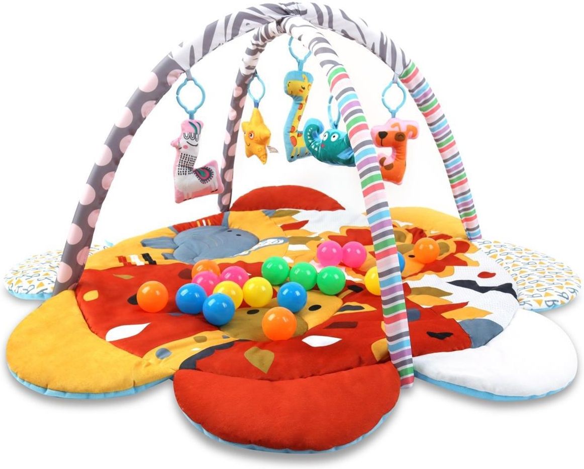 TinyMini JL639-2B Mata edukacyjna 2w1 Kwiat Safari Stworzona z myślą o najmłodszych, mata edukacyjna TinyMini Kwiat Safari to idealne połączenie radości, nauki i bezpieczeństwa. Jej kolorowy, kwiatowy kształt zachęca malucha do odkrywania świata w bezpieczny i przyjazny sposób. Posiada 2 kolorowe pałąki z zawieszkami – 4 zwierzątka i gwiazdkę. Do zestawu dołączone jest 20 plastikowych piłeczek. Dzięki funkcji 2w1 sprawdzi się zarówno jako centrum aktywności dla niemowląt, jak i wygodna mata do zabawy dla starszych dzieci. Mata edukacyjna pomaga w nauce chwytania i rozpoznawania kształtów. Zachęca do aktywności i kreatywnej zabawy. Zawieszki rozwijają zmysły wzroku i dotyku, a także koordynację ruchową. Idealna na prezent dla noworodka lub jako towarzysz codziennych zabaw w pierwszych miesiącach życia. Jest rekomendowana dla dzieci od dnia narodzin. CHARAKTERYSTYKA Mata w kształcie kwiatka 2 pałąki elastyczne 5 zawieszek z uchwytami 20 kolorowych piłeczek Przedział wiekowy 0m+ Spełnia europejskie normy bezpieczeństwa Gwarancja: 1 rok WYMIAR PRODUKTU Średnica: 118 cm Wysokość: 50 cm WYMIAR OPAKOWANIA Wysokość: 50 cm Szerokość: 10 cm Długość: 60 cm Waga produktu: 0,80 kg Waga brutto: 1,33 kg Opisy są własnością firmy PM Investment Group Napert, Soszyński Spółka k. Firma nie zezwala na ich kopiowanie lub powielanie - w całości lub części bez zgody. INFORMACJE NA TEMAT BEZPIECZEŃSTWA PRODUKTU Mata niemowlęca TinyMini Produkt przeznaczony jest dla dzieci od urodzenia. OSTRZEŻENIA! Nigdy nie pozostawiaj dziecka bez opieki. Ten produkt nie zastępuje łóżeczka lub łózka. Jeśli dziecko potrzebuje snu, należy je przenieść do odpowiedniego łóżeczka dziecięcego lub łózka. Nigdy nie umieszczaj produktu i dziecka w nim na podwyższonych powierzchniach (np. stole). Jest to niebezpieczne! Przed położeniem maty na podłodze – oczyść obszar, który będzie w zasięgu dziecka. Usuń wszystkie ostre, małe elementy i inne produkty, które mogą stanowić zagrożenie dla dziecka. Podczas zabawy dziecko musi znajdować się pod opieką osoby dorosłej. Nie przemieszczać produktu z dzieckiem znajdującym się w środku. Pałąk z zabawkami nie służy do przenoszenia produktu. Produkt należy umieszczać z dala od wszelkich źródeł ciepła (np. grzejników, promienników ciepła, otwartego ognia itp.). Przed każdym użyciem osoba dorosła musi sprawdzić stan produktu. W przypadku stwierdzenia uszkodzeń – należy zaprzestać użytkowania. Mata jest przeznaczona wyłącznie do użytku domowego – używaj na podłodze. Wszelkie pozostałe informacje – znajdują się w instrukcji obsługi, do której link znajduje się na stronie producenta. Producent: PM INVESTMENT GROUP Napert, Soszyński Sp.k. Podkowy 18 04-937 Warszawa, Polska email: info@pminvestment.pl Link do etykiety: www.pminvestment.pl/manual/ tinymini_manual.pdf