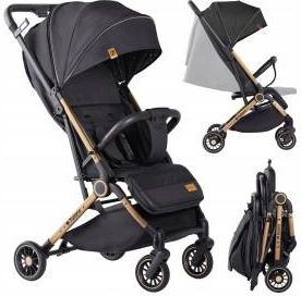 Wózek dziecięcy Milan 35 Black Gold Cechy szczególne Bezpieczeństwo na najwyższym poziomie – podwójna blokada zapobiegająca samoczynnemu złożeniu oraz automatyczna blokada rozkładania wózka Regulowane oparcie – możliwość ustawienia do pozycji leżącej 5-punktowe pasy bezpieczeństwa z ochraniaczami …