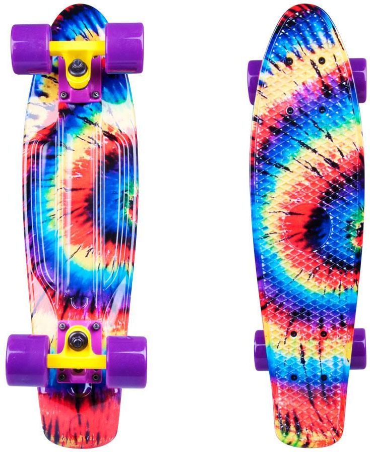 Deskorolka (Pennyboard) WORKER Colore 22" jest deskorolką z tworzywa sztucznego, która przyciąga wzrok, poprzez jej barwny design. Wpada ona w oko zwłaszcza tym, którzy zwracają uwagę na styl oraz praktyczność. Kształt wykonania powierzchni deski ma za zadanie zapobieganiu jakiemukolwiek ślizganiu się po deskorolce Penny. Szybka i przyjemna jazda jest zagwarantowana dzięki zastosowaniu wysokiej jakości łożysk ABEC 11 z maksymalną precyzją produkcji deskorolki. Dodatkowo kompaktowe wymiary i niewielka waga sprawiają, że Pennyboard WORKER Colori łatwo mieć zawsze przy sobie. Deskorolka Colory i jej właściwości sprawią, że szybko ją pokochasz. Opis techniczny: Deska: bardzo odporne tworzywo PP Górna strona pokryta kratownicą wzmacniającą przyczepność Rozmiar deski: 58x15 cm Trucki: 3" ze stopu aluminium, lakierowane Tuleja: 85A, żółty Koła: 60x45 mm Materiał kółek: PU, kolorowe Twardość kół: 82A Łożyska: ABEC 11, barwione Ładowność: 90 kg Waga: 1,85 kg Stylowy motyw graficzny Deska Pennyboardu prezentuje ciekawy design. Kolory są dobrze skontrastowane i ładnie się prezentują. Wytrzymała obudowa Trucki wykonane są z wysokiej jakości aluminium i pokryte racjonalnie sztywna tuleją, zapewniającą trwałość i dobre właściwości jezdne deskorolki. Łożyska ABEC 11 Wysokiej jakości łożyska ABEC 11, są łożyskami gwarantującymi wspaniałe właściwości jezdne i gwarantują wysokość gładkość i szybkość jazdy.