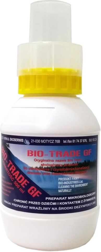 Bio-Trade GF 500 ml + miarka Profesjonalny, ekologiczny preparat do udrażniania i czyszczenia kanalizacji, drenaży oraz separatorów tłuszczu.