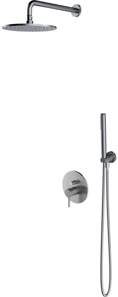OMNIRES system prysznicowy podtynkowy nikiel szczotkowany (NI) Y | system prysznicowy podtynkowy Kolor: nikiel szczotkowany (NI) Kolekcja OMNIRES Y zachwyca czystą linią i nieskazitelną formą, będącą wyrazem pasji w dążeniu do ideału. Inspirację i podstawę dla projektu stanowił kształt koła. Ponadczasowy, perfekcyjnie dopracowany wzór stworzony w duchu minimalizmu daje maksymalne możliwości aranżacyjne. Nikiel jest industrialnym wykończeniem o srebrzystej barwie i satynowej, szczotkowanej powierzchni. Powłoka została wykonana w zaawansowanej technologii PVD. SPECYFIKACJA bateria prysznicowo-wannowa podtynkowa () deszczownica z ramieniem mosiężna (), rozmiar: ø25 cm, zasięg od ściany: 41 cm rączka prysznicowa mosiężna (), 1-funkcyjna wąż prysznicowy w osłonie mosiężnej (), długość 150 cm przyłącze kątowe mosiężne (), z uchwytem na rączkę prysznicową