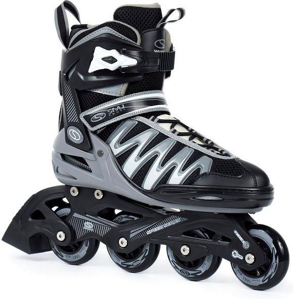 Rolki do jazdy rekreacyjnej marki SMJ sport model PW-150N. Mocna konstrukcja wykonana z najwyższej jakości materiałów zapewnia odpowiedni komfort i bezpieczeństwo jazdy. Przewiewna siateczka w bucie zapewnia odpowiednią przewiewność i cyrkulacje powietrza, co zwiększa komfort użytkowania. Trzy stopniowy system zapinania sprawia, że rolki jeszcze lepiej trzymają się na nodze, gwarantując odpowiednie czucie i bezpieczeństwo użytkowania. Koła PU (najwyższa możliwa domieszka kauczuku) oraz łożyskami ABEC-5, sprawiają, że rolka bardzo dobrze trzyma się podłoża. Model PW-150N to rolki zarówno dla osób początkujących, które chciałyby zacząć jeździć, ale też bardziej zaawansowanych, którzy szukają bardzo dobrego rozwiązania w atrakcyjnej cenie. Koła: PU, 76 x 24 mm, twardość 82A. Łożyska: ABEC-5. Płoza: kompozytowa. Rodzaj zapięcia: klamra, rzep, sznurówki. Rozmiar - długość wkładki ok. 38 - 25 cm . 39 - 25,5 cm . 40 - 26 cm . 41 - 26,5 cm . 42 - 27 cm . 43 - 27,5 cm . 44 - 28 cm . 45 - 28,5 cm . 46 - 29 cm .
