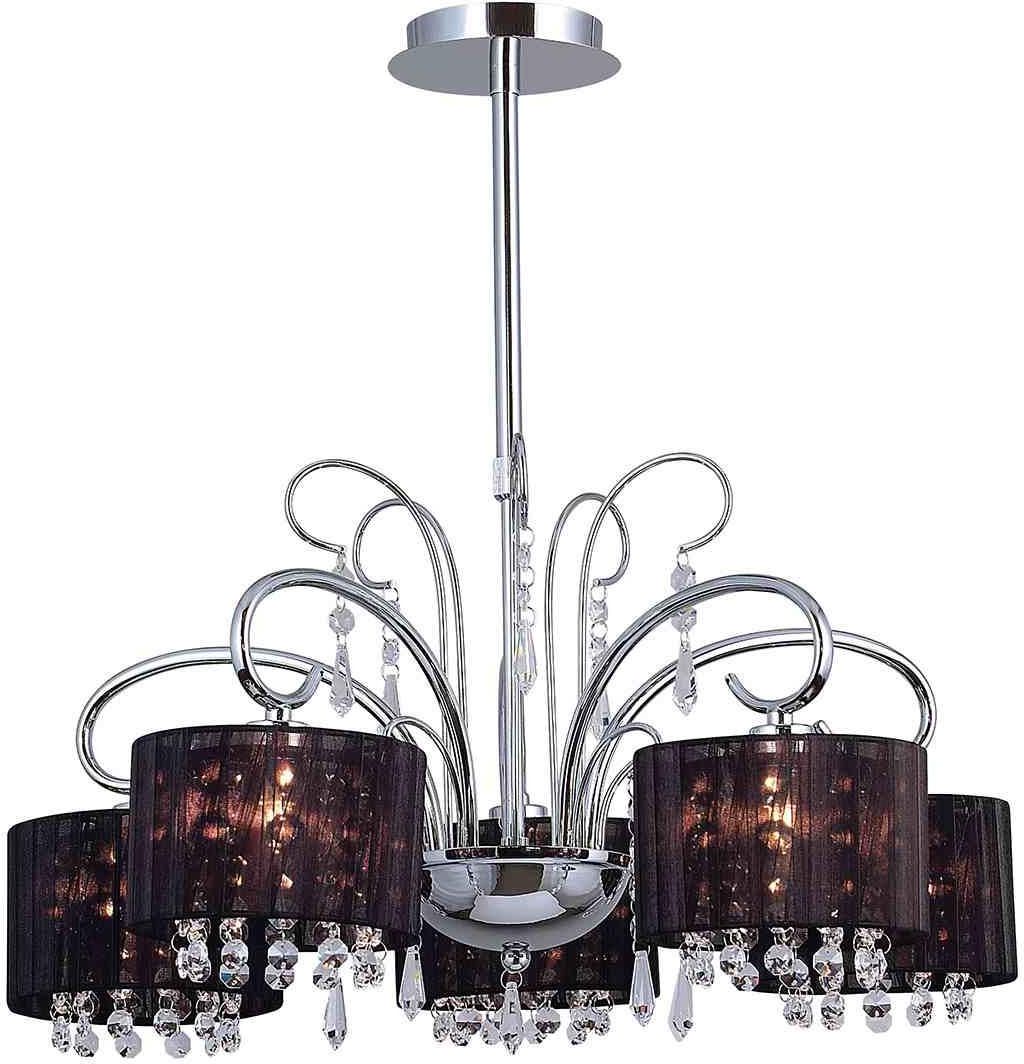 Span - Lampa wisząca Opis produktu: Lampa wisząca Span, pięcioramienna, czarna, z kryształami i abażurami, E14 Parametry produktu: Linia: Span Kolor lampy: Czarny Materiał wykoanania: Stop metali, szkło Kolor / typ klosza: Kryształowy Wysokość całkowita: 60 Wysokość: 43 Średnica: 50 Klasa IP: IP20 …