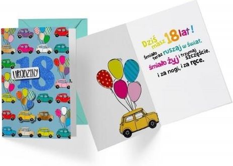 Karnet B6 DK-766 Urodziny 18 Karnet B6 DK-766 Urodziny 18 Kartka B6 z ozdobnej serii Dream Cards - nieduża, ale robi wrażenie dzięki atrakcyjnej kolorystyce i ciekawym zdobieniom. To idealny wybór łączący przyjazną cenę z jakością. Cechy szczególne: wielkość: B6, 16.6 x 11.7 cm po złożeniu, koperta: w zestawie, kolorowa, zdobienia: różnorodne, bogate (w zależności od wzoru: przyklejane dekoracje, elementy biżuteryjne, odstawniki, brokat metaliczne folie, tłoczenia itp.). Karnet B6 DK-766 Urodziny 18 OKAZJA! Spradź inne nasze ofety!