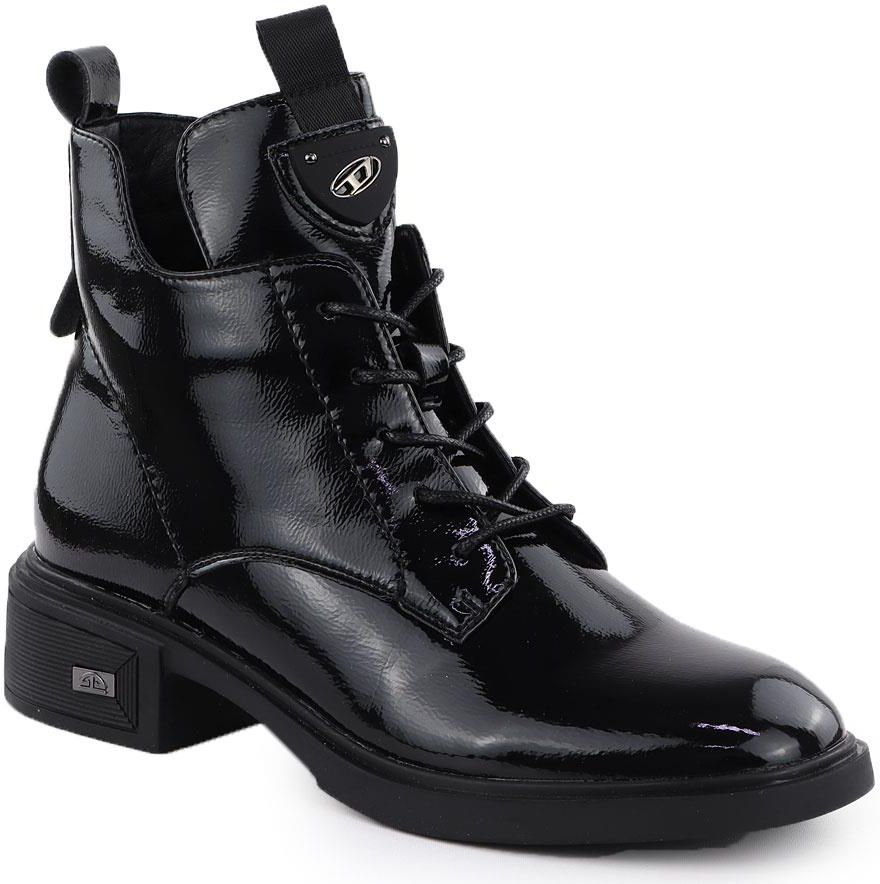Skórzane lakierowane botki na klocku czarne Vinceza 26-39954 Kruszwica