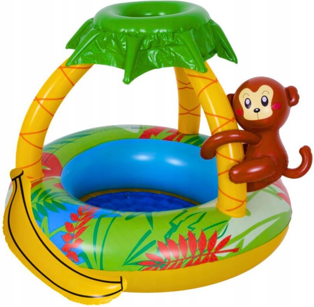 Wodny plac zabaw basen dla dzieci z daszkiem małpka w dżungli Wodny plac zabaw to nieprzecenione miejsce dla każdego dziecka! Gwarantuje niesamowitą zabawę i ochłodę w upalne dni, ale również przyczynia się do rozwoju kreatywności i wyobraźni. Szeroki wybór atrakcji zapewnia niekończącą się zabawę, a Twoje dziecko będzie z przyjemnością spędzało czas na świeżym powietrzu. Produkt ten łączy przyjemne z pożytecznym, ponieważ daje ochłodę w upalne dni i przynosi mnóstwo radości i wiele niezapomnianych przeżyć w trakcie aktywnej rozrywki. Zachwycający mini plac zabaw dla dzieci z motywem małpki w dżungli to idealne rozwiązanie, aby zapewnić najmłodszym niezapomniane chwile pełne radości i zabawy. Dzięki starannemu wykonaniu oraz kolorowej stylistyce basenik zachęci dzieci do aktywności na świeżym powietrzu. Specyfikacja Kształt: Okrągły Motyw: Małpka w dżungli Wymiary: 102x102x80cm Waga użytkownika: 11-18kg Pojemność (sugerowane 75% wypełnienia): 40L Wiek: 1-3 lata Materiał wykonania: Winyl Typ basenu: Basen nadmuchiwany Kolor: Wielokolorowy z przewagą zielonego Pompowany daszek zapewnia cień i ochronę przed działaniem promieni słonecznych Zawartość 1x basen z daszkiem 1x pompowana małpka 1x pompowany banan instrukcja łatka naprawcza Twoje dziecko uwielbia zabawy w wodzie? Mamy dla Ciebie idealny produkt, który zachwyci każde dziecko i stanie się ulubionym miejscem na letnie harce w wodzie! Stabilną konstrukcję zapewniają szerokie ścianki, które doskonale wytrzymają ciężar i napór wody. Dziecko z powodzeniem może się również oprzeć o brzeg brodzika, bez ryzyka utraty wody. Zalety Uniwersalność- możliwość rozłożenia basenu w ogrodzie, jak również na wakacyjnym kempingu. Lekkość i niewielki gabaryt po złożeniu- alternatywa do bezproblemowego transportowania np., na wakacje. Wytrzymałość- winyl sprawia, że basen jest mocny i trwały oraz przeznaczony do kontaktu z wodą w warunkach wysokiego nasłonecznienia. Szeroki wybór atrakcji wodnych- zabawa nadmuchiwaną małpką, którą można posadzić na palmie lub obserwować, jak pływa w wodzie czy pompowanym bananem, którym dziecko może rzucać do wody. Łatwe do utrzymania w czystości- odpowiednia powierzchnia, sprawia, że jest łatwy do utrzymania w czystości. Pompowany daszek zapewnia dziecku cień i ochronę przed działaniem promieni słonecznych w trakcie kąpieli. Basen przeznaczony jest dla bardzo małych dzieci, w wieku od 1 roku 3 lat. Został zaprojektowany z myślą o bezpieczeństwie dzieci, posiada stabilną konstrukcję oraz wytrzymałe materiały. Każdy szczegół tego mini parku wykonany został precyzyjnie, aby zapewnić maksymalną ochronę podczas zabawy. Dzięki temu rodzice mogą mieć pewność, że ich pociechy bawią się w sposób bezpieczny i komfortowy, rozwijając przy tym swoją kreatywność i sprawność fizyczną. Całość została wykonana z wytrzymałego, odpornego na uszkodzenia oraz warunki atmosferyczne winylu, który został poddany wstępnym testom w procesie produkcji. Oznacza to, że materiał jest wysokiej jakości oraz posiada doskonałą odporność chemiczną, dzięki czemu nie traci swoich właściwości mechanicznych, a tym samym nie wpływa na zdrowie użytkownika. Zabawa naszej pociechy będzie zatem całkowicie bezpieczna. Podłoga basenu została wykonana z grubej warstwy winylu, odporna jest zatem na uszkodzenia a jej powierzchnia ma właściwości antypoślizgowe. Dzięki gładkiej powierzchni utrzymanie produktu w czystości nie wymaga dużego wysiłku. Wystarczy pusty basen polać bezpośrednio wodą z węża, ewentualnie przetrzeć szmatką w przypadku silniejszych zabrudzeń. Kolorowa animowana grafika przedstawiająca roślinność występującą w dżungli, jest przyjazna dla dzieci i będzie zachęcała je do zabawy. Pompowane 4 palmy, których liście tworzą daszek nad basenem stworzą dziecku cień w upalny dzień i ochronią jego skórę przed szkodliwym działaniem promieni słonecznych. Nadmuchiwana urocza małpka jest dodatkowym atutem baseniku, można ją posadzić na palmowym pniu lub obserwować jak swobodnie pływa w na powierzchni wody, a jej ulubiony smakołyk banan po napompowaniu dziecko może wrzucać do wody, stwarzając tym samym maluchowi dodatkową rozrywkę. Kompaktowy rozmiar Mała waga oraz niewielkie wymiary to również większa mobilność. Basen jest niezwykle lekki, dzięki temu nawet po nadmuchaniu możemy go przenieść bez problemu z miejsca na miejsce. Ma to znaczenie, jeśli np. ma stać w miejscu bardziej nasłonecznionym, aby woda w nim się szybciej nagrzała lub chcemy go na szybko schować przed burzą, a nie chcemy opróżniać go z powietrza. Napompowanie zajmuje tylko kilka minut, wystarczy użyć pompki elektrycznej lub nożnej przeznaczonej do materacy. W zestawie znajduje się również łatka naprawcza, która w razie niespodziewanej, poważniejszej awarii ocali basen przed utratą powietrza. Co ważne, ze względu na swoją przezroczystą formę, nie będzie rzucać się w oczy. Mini wodny plac zabaw to nie tylko miejsce zabawy, ale również doskonała propozycja na prezent dla dziecka.