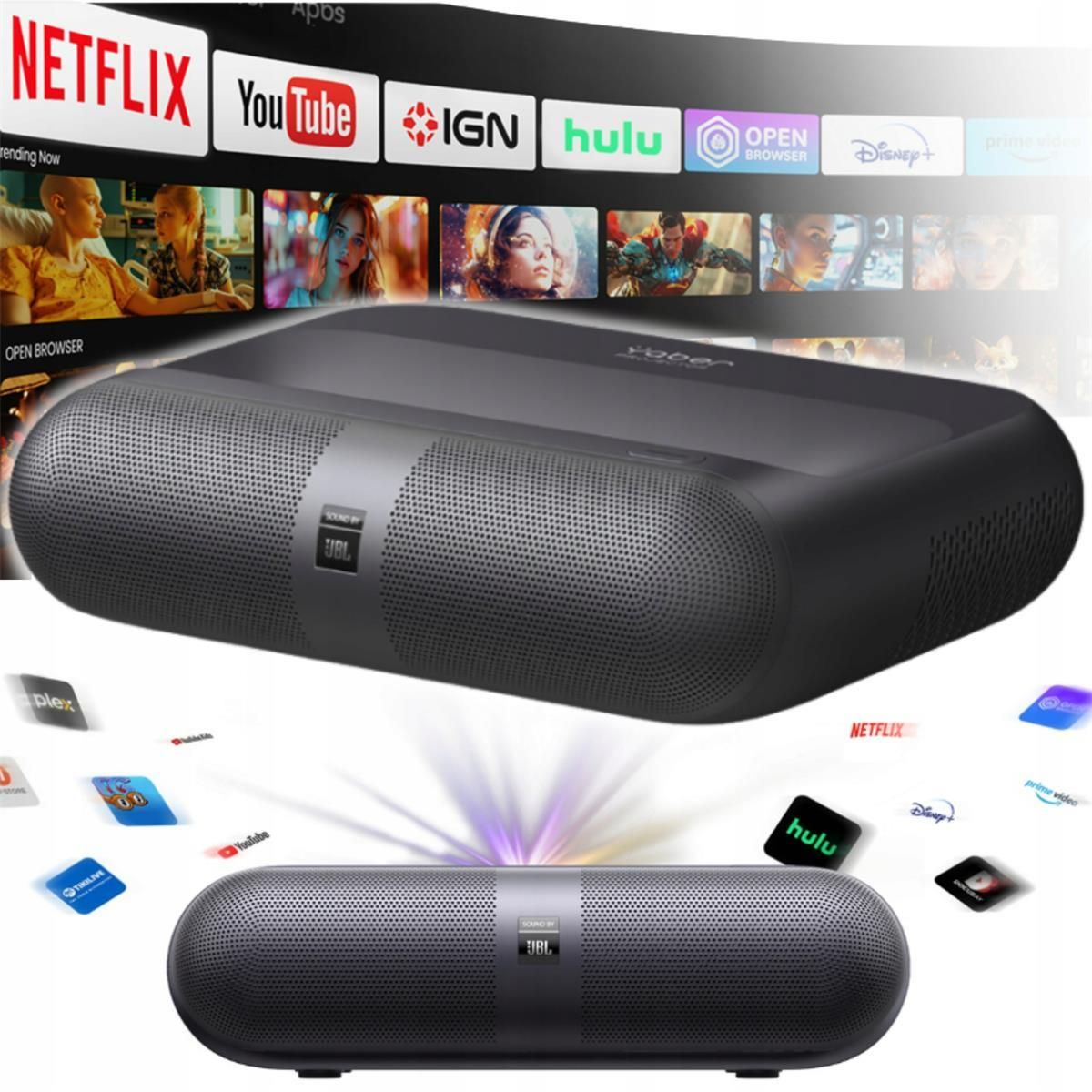 Projektor rzutnik Yaber laserowy RGB z głośnikami JBL ekran projekcyjny ID: 196614 Zestaw: Projektor multimedialny Yaber K300s laserowy RGB FullHD 1080p z głośnikami JBL + ekran projekcyjny Yaber YS-120F 120" 16:9 przenośny mobilny ID: 196614 Projektor multimedialny Yaber K300s laserowy RGB FullHD 1080p z głośnikami JBL - czarny Odkryj nowy wymiar rozrywki z projektorem multimedialnym Yaber K300s! Dzięki ultrakrótkiej ogniskowej możesz uzyskać 100-calowy obraz z zaledwie 23 cm – bez konieczności dużej przestrzeni. Zaawansowana technologia Triple RGB Laser gwarantuje intensywne kolory przekraczające 150% gamy NTSC – to ponadprzeciętny zakres barw, który czyni każdą scenę bardziej realistyczną i spektakularną. Jasność 1000 ANSI lumenów pozwala cieszyć się projekcją nawet przy świetle dziennym. Zintegrowane głośniki JBL o mocy 15W wraz z obsługą Dolby Audio zapewniają dynamiczne, głębokie brzmienie. Wbudowane Wi-Fi 6 i Bluetooth 5.1 zapewniają szybkie i bezproblemowe połączenia. A do tego tryb Game Mode z opóźnieniem poniżej 40 ms — stworzony z myślą o graczach. Gotowy na prawdziwe kino w Twoim domu? Projektor multimedialny Yaber K300s - specyfikacja techniczna Marka: Yaber Model: Yaber K300s Typ: Projektor ultrakrótkoogniskowy (UST) Źródło światła: Potrójny laser RGB Rozdzielczość: Full HD 1080p (1920 × 1080) Technologia projekcji: DLP (Digital Light Processing) Jasność: 1000 ANSI lumenów Kolory: >150% NTSC Obraz: 40–120" z odległości od 23 cm (rzut 0.18:1) Ostrość / Korekcja: Automatyczna Głośniki: 2 × 15W JBL + Dolby Audio Łączność: Wi-Fi 6, Bluetooth 5.1 Wbudowane złącza: HDMI ARC, USB-A, LAN RJ-45, jack 3,5 mm Funkcje: sterowanie głosowe, MEMC, ochrona oczu, tryb Game < 40 ms Pamięć: RAM 1.5 GB / ROM 8 GB Obsługiwane formaty wideo: TS, MPEG, MP4, MOV, M2TS, MKV, FLV, VOB, DAT, M4V, F4V, 3GP, 3G2, TP, TRP, RMVB Obsługiwane formaty audio: MP3, AAC, LPCM, APE, FLAC, OGG, AMR Wymiary / Waga produktu: 29 × 22,3 × 8,3 cm / 1,8 kg Kolor: czarny Zawartość opakowania Projektor laserowy Yaber K300s Zasilacz K300s Ściereczka do czyszczenia Pilot do projektora Skrócona instrukcja obsługi (QSG) i FAQ Kabel HDMI 1.5m Najważniejsze zalety Projektor multimedialny Yaber K300s 100-calowy obraz z odległości 23 cm: Technologia UST pozwala na wielkoformatową projekcję z niewielkiej odległości – idealna do mniejszych przestrzeni. Triple RGB Laser z gamą kolorów ponad 150% NTSC: Spektakularna intensywność barw i realistyczna jakość obrazu w każdej scenie. Głośniki JBL 2×15W i Dolby Audio: Kinowy dźwięk bez potrzeby zewnętrznych głośników – głęboki bas i czystość tonów. Jasność 1000 ANSI lumenów: Wyrazisty obraz nawet w umiarkowanie oświetlonych pomieszczeniach. Stabilna łączność dzięki Wi-Fi 6 i Bluetooth 5.1: Szybkie i niezawodne połączenia z urządzeniami i siecią domową. 100-calowy ekran z zaledwie 23 cm – UST w akcji Dzięki ultrakrótkiej ogniskowej możesz ustawić projektor blisko ściany i uzyskać obraz 100" – bez cieni i bez potrzeby dużego pomieszczenia. Głośniki JBL i Dolby Audio przenoszą dźwięk na nowy poziom Wbudowane głośniki zapewniają czysty i donośny dźwięk – bez konieczności podłączania zewnętrznych zestawów. Triple RGB Laser i ponad 150% gamy NTSC dla kinowej głębi kolorów Projektor Yaber K300s zapewnia obraz o niezwykłej intensywności barw dzięki technologii potrójnego lasera RGB oraz odwzorowaniu kolorów przekraczającemu 150% przestrzeni NTSC. Efekt? Jeszcze bardziej realistyczne i żywe kolory, które zbliżają domową projekcję do jakości obrazu z sal kinowych. 1000 ANSI lumenów – jasny obraz nawet przy świetle dziennym Niezależnie od warunków oświetleniowych, Twoje projekcje zawsze pozostają czytelne i szczegółowe. Stabilna łączność dzięki Wi-Fi 6 i Bluetooth 5.1 Bezprzewodowa swoboda i szybkość – projektor Yaber K300s bezproblemowo łączy się z siecią oraz urządzeniami mobilnymi i stacjonarnymi. Ekran projekcyjny Yaber YS-120F 120" 16:9 przenośny - specyfikacja techniczna Marka: Yaber Model: Yaber YS-120F Przekątna: 120 cali Proporcje: 16:9 Kąt widzenia: 160° Współczynnik odbicia: 1.0 Gain Typ montażu: ścienny Możliwość prania: tak Odporność na zagniecenia: tak Materiał: poliester Kolor: biały z czarną ramką Najważniejsze zalety Ekranu Yaber YS-120F Imponująca przekątna 120 cali: Ogromny ekran umożliwia wyświetlanie treści w kinowej jakości – idealny do filmów, gier, transmisji sportowych i prezentacji. Format 16:9 z szerokim kątem widzenia: Dzięki proporcjom 16:9 i kątowi 160°, obraz jest wyraźny i dobrze widoczny z każdej perspektywy. Mobilny i łatwy w instalacji: Ekran można szybko zamontować i zdemontować, co czyni go idealnym do użytku przenośnego lub okazjonalnego. Materiał odporny na zagniecenia i żółknięcie: Powierzchnia wykonana z wytrzymałego poliestru zachowuje idealną płaskość i trwałość przez długi czas. Wszechstronność zastosowania: Doskonale sprawdzi się zarówno w domu, jak i na zewnątrz – od kina domowego po spotkania biznesowe i wydarzenia na świeżym powietrzu.