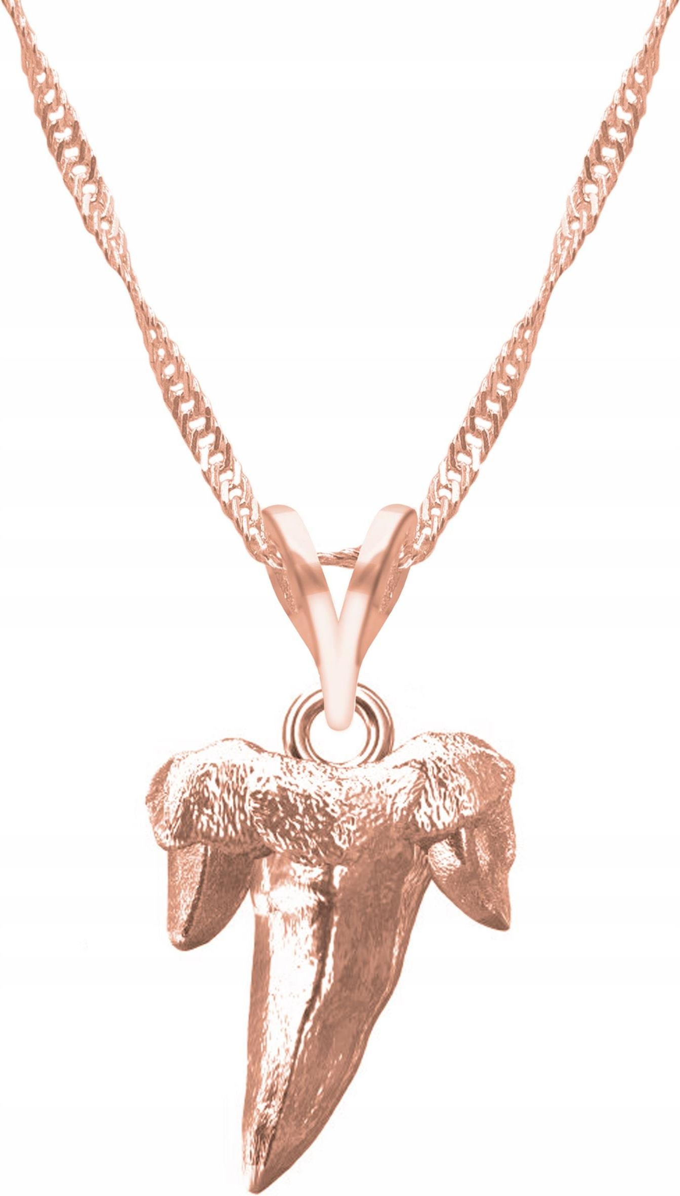 Naszyjnik Ząb Rekina różowe złoto 💙 Surowiec: Srebro 💙 Próba: 925 💙 Powłoka:4-warstwy różowego złota próby 750 (18 Karatów) 💙 Kamień: Brak 💙 Typ: Naszyjnik 💙 Długość: 47cm + 3cm (przedłużka w kształcie serc) 💙 Splot łańcuszka: Singapur 💙 Wysokość zawieszki: 15mm 💙 Motyw: Inny 💎 Biżuteria …