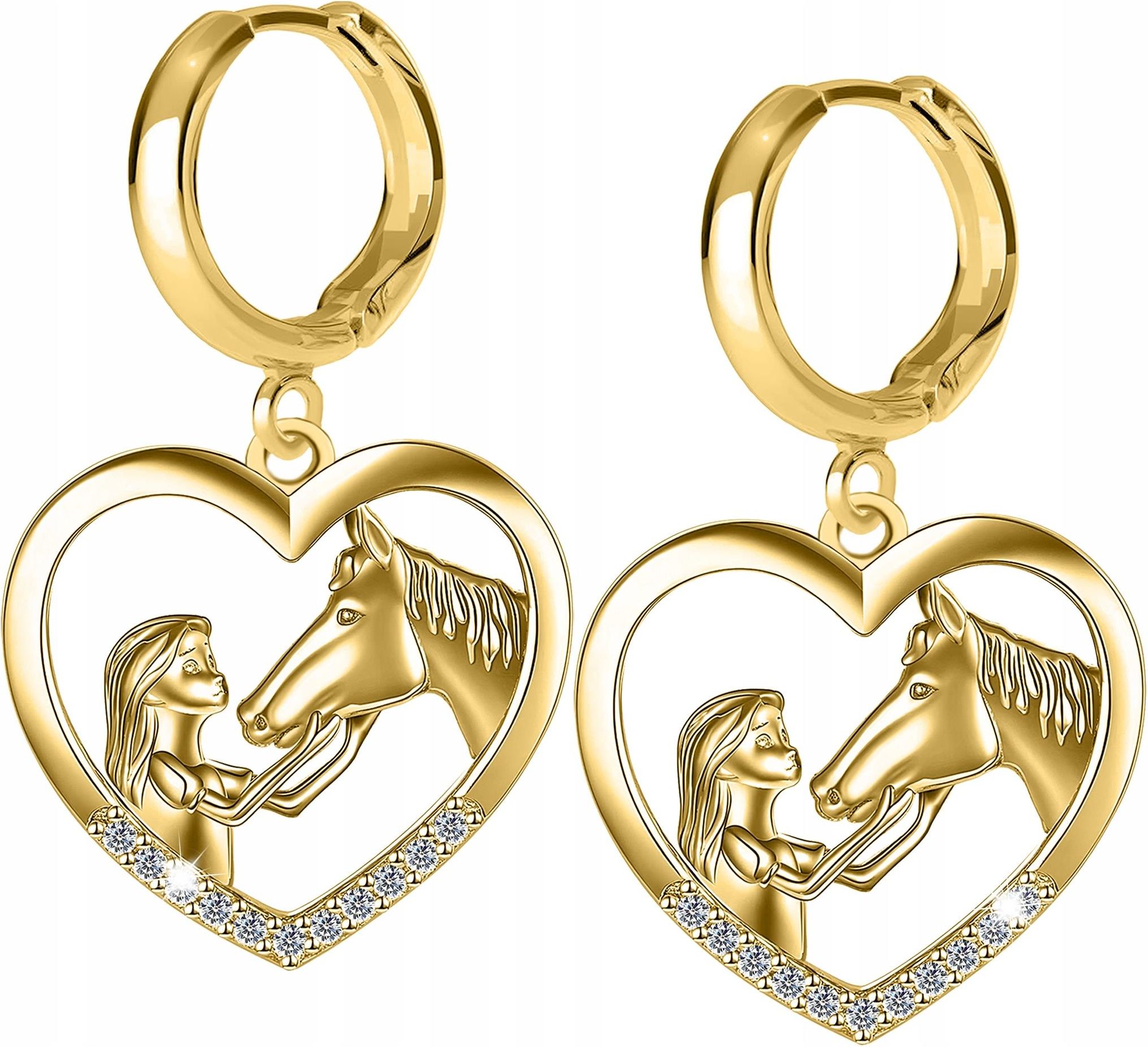 Larezo Złote Kolczyki Serce Konie Pozłacane 585 Dziewczynka z Koniem Koń Srebro Krynica-Zdrój