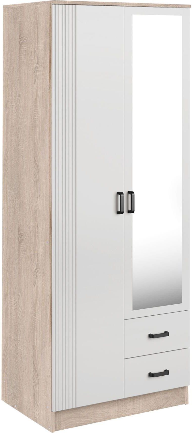Mebel Bos Szafa Cento Ii 80X205 2D2S Dąb Sonoma / Biały Ryfel Z Lustrem Krynica-Zdrój