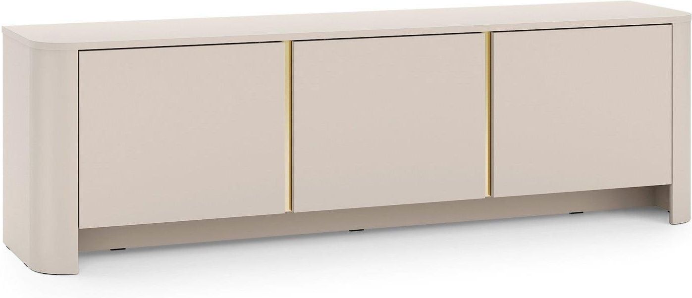 Szukasz eleganckiej szafki pod telewizor w kolorze kaszmiru, która połączy nowoczesny wygląd z praktycznymi rozwiązaniami?Poznaj szafk Bari kaszmir RTV168 z kolekcji marki Piaski – doskonały wybór dla miłośników stylu japandi, nowoczesnej prostoty i ponadczasowej elegancji.Szafka RTV Bari zachwyca prostą, geometryczną formą i neutralnym kolorem frontów w odcieniu kaszmiru. To subtelna alternatywa dla klasycznej bieli, która wnosi do wnętrza ciepło i spokój.Złota, pionowalistwa dekoracyjna stanowi delikatny akcent, który przyciąga wzrok i dodaje całości luksusowego charakteru – bez nadmiaru przepychu.Szafka Bari RTV168 została zaprojektowana z myślą o wygodnym przechowywaniu:posiada zamknięte szafki na sprzęt RTV i ułatwia ukrycie drobiazgów.Korpus wykonany z płyty laminowanej o grubości 16 mm, wykończony obrzeżem ABS 0,5 mm oraz zaobloną listwą MDF 18 mm; front z płyty laminowanej 16 mm, z obrzeżem ABS 0,5 mm.Wyposażona jest w zawiasy z firmy GTV, które zapewniają płynne otwieranie i zamykanie drzwiczek w systemie push to open.Pochodząca z polskiej produkcji, szafka Bari reprezentuje nowoczesny styl, który doskonale wpisuje się w różnorodne aranżacje wnętrz. Wymiary: szerokość 168 cm, głębokość 39 cm, wysokość 52 cm.Dlaczego warto wybrać szafkę RTV kaszmir Bari?nowoczesny design bez zbędnych ozdobników, modny, ciepły kolor kaszmiru, złota listwa dekoracyjna dla efektu „premium”, przemyślany układ półek, bezuchwytowy system otwierania, solidne wykonanie z trwałych materiałów, idealna do różnych pomieszczeń.Zapraszamy do zakładek Produkty z rodziny oraz Produkty podobne.Model objęty jest 2-letnią gwarancją producenta.Produkt dostarczymy do Państwa BEZPŁATNIE pod wskazany adres na terenie całego kraju.Mebel wymaga krótkiego montażu, zgodnie z załączoną instrukcją.Co WAŻNE: zgodnie z prawem i naszymregulaminemmają Państwo pełne prawo do zwrotu nieużywanych towarów, jeśli nie spełnią one Państwa oczekiwań.