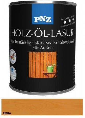 PNZ Lazura Olejna ochronna do drewna 2,5L Pinia Lazura Olejna to dekoracyjna, transparentnie barwiąca powłoka do ochrony drewna na zewnątrz. Została opracowana na bazie naturalnych olejów roślinnych, które wnikają głęboko w drewno, zachowując jego elastyczność i zdrowy wygląd. Produkt nadaje drewnu piękny kolor, pozostawiając doskonale widoczny rysunek słojów drewna. Lazura zawiera aktywne składniki chroniące ją przed atakiem pleśni, alg i grzybów i sprawdza się od dziesięcioleci, również w ekstremalnych warunkach klimatycznych. ochrona UV znakomita odporność na działanie czynników atmosferycznych mocno hydrofobowa Wydajność: 25m2 / L Zakres stosowania: Wszystkie gatunki drewna stosowane na zewnątrz takie jak okna, okiennice, domki ogrodowe, fasady drewniane, płoty, meble ogrodowe. Może być stosowana jako pierwsza impregnacja jak i do renowacji powłoki. Lazura olejna do drewna jest lazurującą , niekapiącą , łatwą w użyciu, hydrofobową , mikroporowatą i odporną na UV powłoką do drewna. Zapewnia znakomitą ochronę przed działaniem czynników atmosferycznych i promieniowania UV z dobrymi właściwościami penetrującymi, łatwa w aplikacji i neutralna zapachowo. Najważniejsze zalety Lazury Olejnej PNZ POZWALA DREWNU ODDYCHAĆ: Naturalne oleje do drewna wnikają głęboko w pory drewna, a substancje stałe zapewniają drewnu ochronę od zewnątrz przed np. szkodliwym działaniem wilgoci. Drewno pokryte Lazurą przyjmuje i oddaje wilgoć bez jakichkolwiek uszkodzeń powłoki. NATURALNE SKŁADNIKI: Lazura została opracowana na bazie uszlachetnionych olejów naturalnych jak olej sojowy i słonecznikowy oraz wosków naturalnych. Idealna do naturalnej, przyjaznej dla środowiska ochrony drewna. ŁATWA APLIKACJA: Powłoka na bazie naturalnych olejów nie wymaga stosowania gruntów ani podkładów. Zapewnia znakomite pokrycie powierzchni drewna ze względu na wysoką zawartość substancji stałych. Długi czas obróbki sprawia, że łatwo otrzymać idealną powłokę bez śladów pociągnięć pędzla. Nie trzeba rozcieńczać produktu – jest gotowy bezpośrednio do użycia Przygotowanie podłoża podłoże musi być czyste, suche , wolne od tłuszczu i nośne ( stare powłoki przeszlifować ) . Zwietrzałe powierzchnie zeszlifować do nośnego drewna Zanieczyszczenia usunąć za pomocą odpowiedniego środka czyszczącego. W przypadku drewna iglastego stosowanego na zewnątrz celem ochrony przed grzybami należy przed pierwszym malowaniem zastosować odpowiedni impregnat Temperatura stosowania (włącznie ze schnięciem ) od + 8 °C. wilgotność drewna maksimum 18 %. wilgotność powietrza < 60 %. Dobrze wymieszać zawartość przed i w czasie użycia. Zróżnicowanie działanie w zależności od powierzchni. Wymagane zrobienie próby APLIKACJA Lazurę olejną nanieść na drewno za pomocą pędzla, wałka bądź pistoletu natryskowego, z zachowaniem każdorazowo 12 godzinnego okresu schnięcia. Po tym czasie drewno jest odporne na działanie czynników atmosferycznych. Mikroporowate powłoki oczyścić, ewentualnie przeszlifować, następnie nanosić zgodnie z wcześniejszym opisem. Po użyciu umyć pędzel i narzędzia przy pomocy rozcieńczalnika lub terpentyny. Zużycie: ok. 40 ml/m², tzn. 1 litr lazury olejnej do drewna wystarcza na ok. 25 m² powierzchni przy jednej warstwie. W zależności od rodzaju drewna i powierzchni ( heblowane albo zgrubnie przetarte ). Zużycie może wzrosnąć przy ryflowanym drewnie (współczynnik 2-3 ). Mniejsze zużycie wpływa na trwałość powłoki.