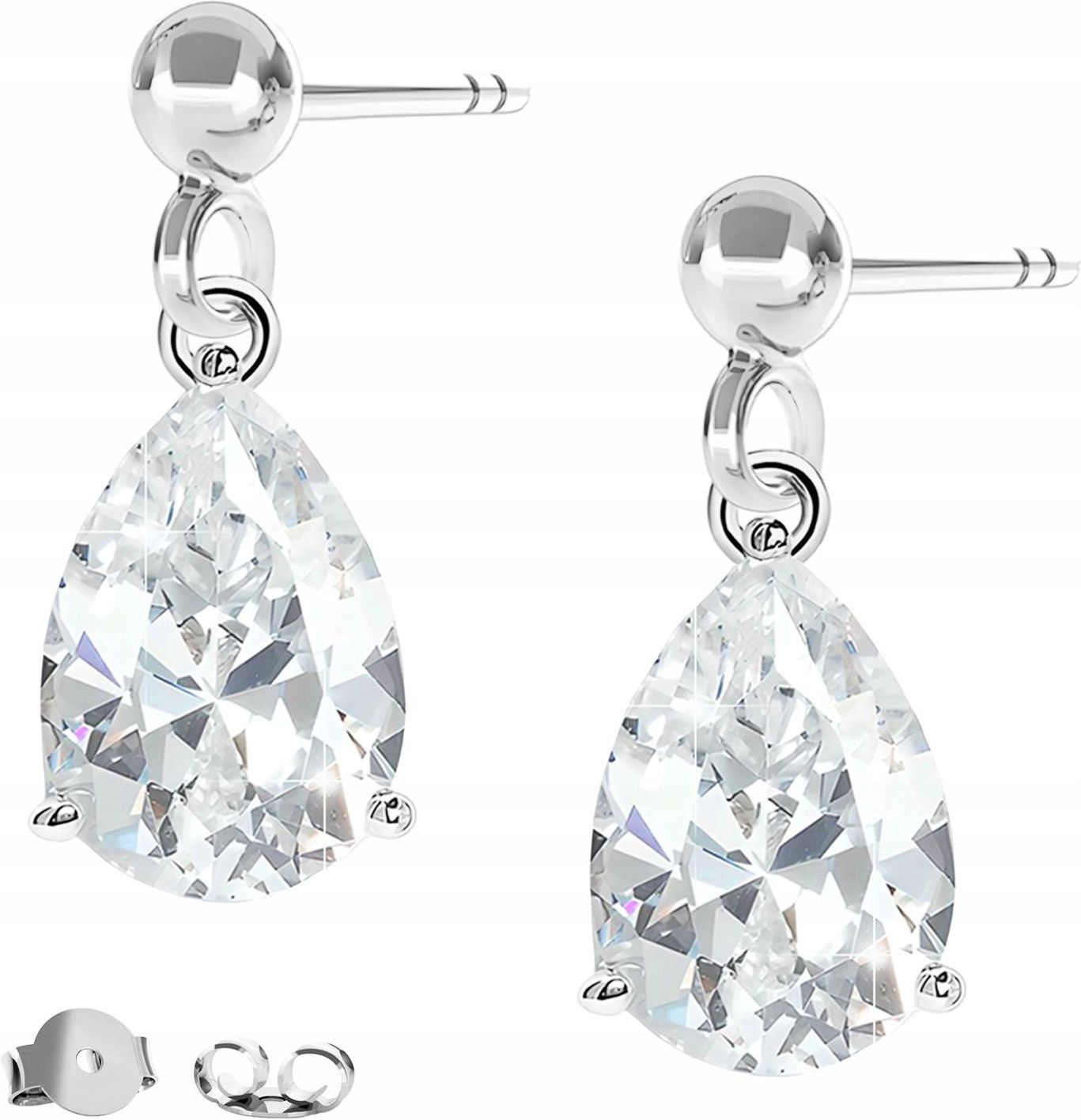 Srebrne Kolczyki 925 z Kryształem Wiszące Łezki Krople Wody Cyrkonia Srebro Krynica-Zdrój