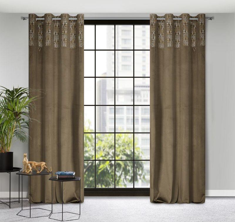 ZASŁONA LIZA C. BEŻOWA ZE ZŁOTYM WZOREM 140x250 cm Cena dotyczy 1 sztuki Szczegóły: Wymiary: 140x250 cm Kolor: beżowy, złoty Gramatura tkaniny: 200 gsm Skład: 100% poliester Rodzaj zawieszenia: metalowe przelotki Średnica wewnętrzna przelotki: 4 cm Średnica zewnętrzna przelotki: 6 cm Ilość przelotek: 8 szt Temperatura prania: 30°C Temperatura prasowania: 110°C Producent: Eurofirany Zalety zasłony jednokolorowa zasłona z miękkiej tkaniny welwetowej; góra zasłony ozdobiona jest szerokim pasem z dekoracyjnym z cieniowanym wzorem w kolorze złotym; ponadczasowa dekoracja okienna świetnie prezentuje się w towarzystwie wzorzystych firan; precyzyjne wykończenie szwów bocznych i dolnych sprawia, że zasłona nie roluje się i nie marszczy; doskonale podkreśla charakter aranżacji i dodaje wnętrzu przytulności; średni stopień zaciemnienia wnętrza; Zasłona na przelotki / kółka uniwersalne rozwiązanie - oczka o średnicy 4 cm pozwalają na upięcie zasłon na karniszach drążkowych o różnych średnicach drążka; koniec problemów z opadaniem - zasłony zawieszone za pomocą przelotek nie opadają; szybkie i proste upięcie - przelotki pozwalają uniknąć mozolnego wieszania zasłon; profesjonalny efekt bez wysiłku - równomiernie rozłożone przelotki sprawiają, że zasłona zawsze układa się w idealne fale; Dodatkowe informacje Cena dotyczy sprzedaży 1 sztuki. Wszystkie wymiary podane na naszych aukcjach zostały podane po zmierzeniu tkaniny "na płasko" (przed marszczeniem).