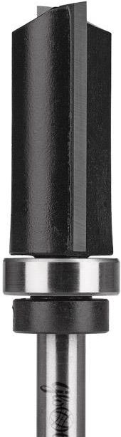 frezowanie drewna litego miękkiego i twardego oraz materiałów drewnopochodnych (płyta wiórowa, MDF, HDF, OSB, etc.) wykorzystywane przy produkcji mebli, drzwi i schodów, gdzie nie ma możliwości wykonania elementów za pomocą standardowych operacji frezowania frezy z łożyskiem górnym umożliwiają prowadzenie narzędzia po wzorniku umieszczonym nad materiałem frezowanym stosowane na frezarkach górnowrzecionowych mocowanie frezów w koszykach: możliwość stosowania tulei redukcyjnych części chwytowej freza, mocować min. 2/3 wysokości części chwytowej freza w uchwycie frezarki Cechy: otwarte profile korpusów poprawiają jakość obrabianej powierzchni - możliwość stosowania większych posuwów, zmniejszenie oporów skrawania, lepsze odprowadzenie wiórów wysokiej jakości węglik spiekany zwiększa trwałość oraz żywotność - większa wydajność narzędzia precyzyjny szlif węglika spiekanego pozwala uzyskać wysoką gładkość płytki HM (niską chropowatość) - wpływa to na wzrost żywotności narzędzia oraz świadczy o wysokiej jakości zastosowanego węglika spiekanego łatwy i przejrzysty sposób pakowania - możliwość eksponowania narzędzi w gablotach i na regałach