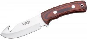 Nóż ze stałym ostrzem Ostrze 120 mm ze stopu molibdenowo-wanadowego z hakiem do jelit Waga 240 g Uchwyt drewniany Skórzana pochwa