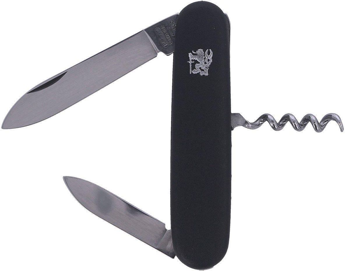 Scyzoryk Mikov Stovka 200-NH-3 Scyzoryk zawierający dwa ostrza i korkociąg. Ostrze: stal nierdzewna 420 Uchwyt: tworzywo sztuczne Długość całkowita: 90 mm Długość ostrza: 70 mm Szerokość ostrza: 12 mm Waga: 54 g