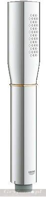 Grohe Grandera™ Stick Zalety technologii GROHE w Grandera™ Stick EcoJoy® ekologia na pierwszym miejscu – EcoJoy® to do 50% mniejsze zużycie wody DreamSpray® idealnie równy i pełny strumień prysznica, z technologią rozprowadzania wody DreamSpray® Wewnętrzne kanały w słuchawce prysznica słuchawka prysznica zawsze bezpieczna w dotyku dzięki wewnętrznym kanałom, izolującym powierzchnię od przepływu gorącej wody StarLight® efekt na lata – starannie dopracowany projekt i wytrzymałe wykończenie z chromu GROHE StarLight® SpeedClean® łatwe i szybkie usuwanie osadów wapiennych z dysz prysznica dzięki technologii SpeedClean® Dane techniczne Numer katalogowy do danych technicznych: 26037IG0 Strumienie wody - deszczownice i prysznice: Strumień Rain Montaż - deszczownice i prysznice: do baterii Typ - deszczownice i prysznice: prysznic ręczny Kolor - deszczownice i prysznice: chrom/złoty Przyłącze - deszczownice i prysznice: wąż prysznicowy Ogranicznik przepływu strumienia: stały Nadaje się do podgrzewaczy przepływowych - deszczownice i prysznice: tak Minimalne rekomendowane ciśnienie - deszczownice i prysznice: 1 bar Liczba wejść wody - deszczownice i prysznice: 1 Minimalny przepływ - deszczownice i prysznice: 7,6 l/min Gwint przyłącza - deszczownice i prysznice: brak danych Materiał - deszczownice i prysznice: metal Demontaż tylko przy użyciu narzędzi: nie Wstępnie regulowane natężenie przepływu: nie Długość słuchawki: 217 mm Technologie GROHE GROHE EcoJoy® Podczas projektowania swoich produktów, firma GROHE kładzie ogromny nacisk na oszczędność wody i energii. Efektem tych starań jest technologia EcoJoy®, która gwarantuje zrównoważone gospodarowanie cennymi naturalnymi zasobami przy jednoczesnym zachowaniu wysokiego komfortu użycia. Pozwala ona na ochronę środowiska bez kompromisów na rzecz wydajności, a dzięki pracy naszego zespołu projektowego, ograniczone zużycie wody i energii idzie w parze z eleganckim wyglądem i zachwycającą ergonomią. GROHE DreamSpray® Sercem każdego prysznica i deszczownica wyprodukowanego przez GROHE jest unikalny system dystrybucji wody - DreamSpray®. Dzięki niemu woda trafia do każdej dyszy pod równym ciśnieniem, zapewniając użytkownikowi najwyższy komfort podczas kąpieli. Dlatego nieważne który strumień z szerokiej oferty GROHE wybierzesz - cudownie lekki, napowietrzony Rain O2 czy imitujący masaż koniuszkami palców Massage - możesz być pewny, że będzie wspaniale równy i pełny. GROHE CoolTouch® Technologia GROHE CoolTouch® gwarantuje, że bateria nigdy nie będzie zbyt gorąca w dotyku. Dzięki kanałom z zimną woda znajdującym się wewnątrz solidnego metalowego korpusu, przepływ wody gorącej jest izolowany od lśniącej chromowanej powierzchni, zabezpieczając ją przed zbytnim nagrzaniem. Ochroni to użytkowników przed przypadkowym oparzeniem i będzie przydatne zwłaszcza dla rodzin z małymi dziećmi, które nie zawsze wiedzą czego można bezpiecznie dotknąć. GROHE StarLight® Produkty firmy GROHE gwarantują, że po latach użycia będą wyglądać równie olśniewająco co w dniu zakupu. Sekret ich wyjątkowej trwałości tkwi w ulepszanej od 75 lat, unikalnej metodzie nakładania chromu, która pozwala uzyskać wyjątkowo trwałą i odporną na uszkodzenia powierzchnię. Dzięki starannie opracowanemu procesowi produkcji i rygorystycznej kontroli jakości, lśniąca powłoka GROHE StarLight® jest jednym z najlepiej rozpoznawalnych sposobów wykończenia na świecie. O firmie GROHE Jakość Opracowane przez Niemieckich inżynierów projekt, staranny proces produkcji oraz skrupulatna kontrola po jego zakończeniu sprawiają, że jesteśmy pewni najwyższej jakości naszych produktów. Wybierając GROHE masz pewność przyjemnie prostej obsługi, niezawodności i trwałości liczonej w latach. Design Wzornictwo, obok którego nie można przejść obojętnie, eleganckie kształty, staranne wykonanie i materiały najwyższej jakości. Produkty GROHE opracowywane są przez wielokrotnie nagradzany zespół projektowy, który przełamuje schematy i patrząc w przyszłość, wychodzi naprzeciw Twoim oczekiwaniom. Technologia Dziesiątki lat doświadczenia w branży sanitarnej pozwoliły nam na opracowanie niezawodnych rozwiązań, które sprawiają, że obsługa produktów GROHE to czysta, intuicyjna przyjemność. Nasz zespół inżynierski wciąż jest o krok przed konkurencją, opracowując innowacyjne technologie, które wznoszą komfort użycia na nowy poziom. Ekologia Troska o środowisko naturalne skłania nas do tego, by komfort obsługi naszych produktów łączył się z oszczędnym gospodarowaniem wodą oraz energią. W tym celu stworzyliśmy szereg technologii, które pozwalają zminimalizować koszty eksploatacji i chronić cenne naturalne zasoby, nie obniżając przy tym wydajności i wygody użycia. © 2016 Grohe Polska Sp.zo.o.