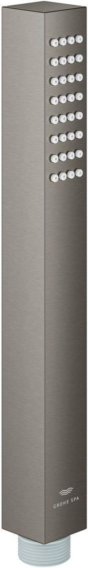 GROHE-Rainshower Aqua Cube Stick to innowacyjna słuchawka prysznicowa, która łączy w sobie nowoczesny design oraz wyjątkową funkcjonalność. Wykonana w eleganckim kolorze brushed hard graphite, idealnie wpasowuje się w trendy współczesnych łazienek, dodając im elegancji i wyrafinowania. Ta słuchawka prysznicowa nie tylko zachwyca wyglądem, ale i spełnia oczekiwania najbardziej wymagających użytkowników, oferując im niezrównany komfort codziennej kąpieli. Technologia GROHE DreamSpray to kluczowa cecha, dzięki której każdego dnia możesz cieszyć się perfekcyjnym rozkładem strumienia wody. Słuchawka została zaprojektowana z myślą o jednorodnym i przyjemnym doznaniu podczas kąpieli. Osprzęt ten zapewnia optymalne ciśnienie wody, umożliwiając pełne wykorzystanie potencjału systemu prysznicowego. Teraz każdy prysznic może być prawdziwą przyjemnością, a nie tylko codzienną rutyną. Wielofunkcyjność GROHE-Rainshower Aqua Cube Stick zasługuje na szczególną uwagę. Dzięki trzem rodzajom strumienia, w tym delikatnemu deszczowemu oraz intensywnemu masującemu, użytkownicy mogą dostosować swoje doświadczenie do aktualnych potrzeb. Słuchawka prysznicowa łatwo zmienia tryby, co sprawia, że każdy z nas znajdzie coś dla siebie. Możliwość wyboru intensywności i stylu strumienia wody sprawia, że każda kąpiel staje się unikalnym rytuałem. Oprócz swojego efektownego wyglądu i innowacyjnych rozwiązań technologicznych, GROHE-Rainshower Aqua Cube Stick charakteryzuje się także łatwością w utrzymaniu. Dzięki zastosowanej technologii Silicone SpeedClean do usuwania osadów kamiennych, czyszczenie i konserwacja stają się szybkie i bezproblemowe. To sprawia, że słuchawka nie tylko dłużej zachowuje estetykę, ale także funkcjonalność, co znacząco wpływa na komfort użytkowania. Podsumowując, GROHE-Rainshower Aqua Cube Stick to produkt, który z pewnością spełni oczekiwania nawet najbardziej wymagających kosmetyków do łazienki. Połączenie przyjemności korzystania, zaawansowanej technologii oraz nowoczesnego wyglądu sprawia, że jest to wybór idealny dla każdego, kto ceni sobie luksus w codziennej pielęgnacji. Umożliwiając dostosowanie kąpieli do indywidualnych preferencji, ta słuchawka prysznicowa przekształci Twoje łazienkowe doświadczenia w prawdziwą przyjemność. Podmiot odpowiedzialny za ten produkt na terenie UE: GROHE Deutschland Vertriebs GmbH - więcej Producent GROHE Deutschland Vertriebs GmbH Adres: Zur Porta 9 Kod pocztowy: 32457 Miasto: Porta Westfalica Kraj: Deutschland Podmiot odpowiedzialny GROHE SP. Z O.O. Adres: ul. Puławska 182 Kod pocztowy: 02-670 Miasto: Warszawa Kraj: Polska Adres email: biuro@grohe.com Numer telefonu: +48225432640